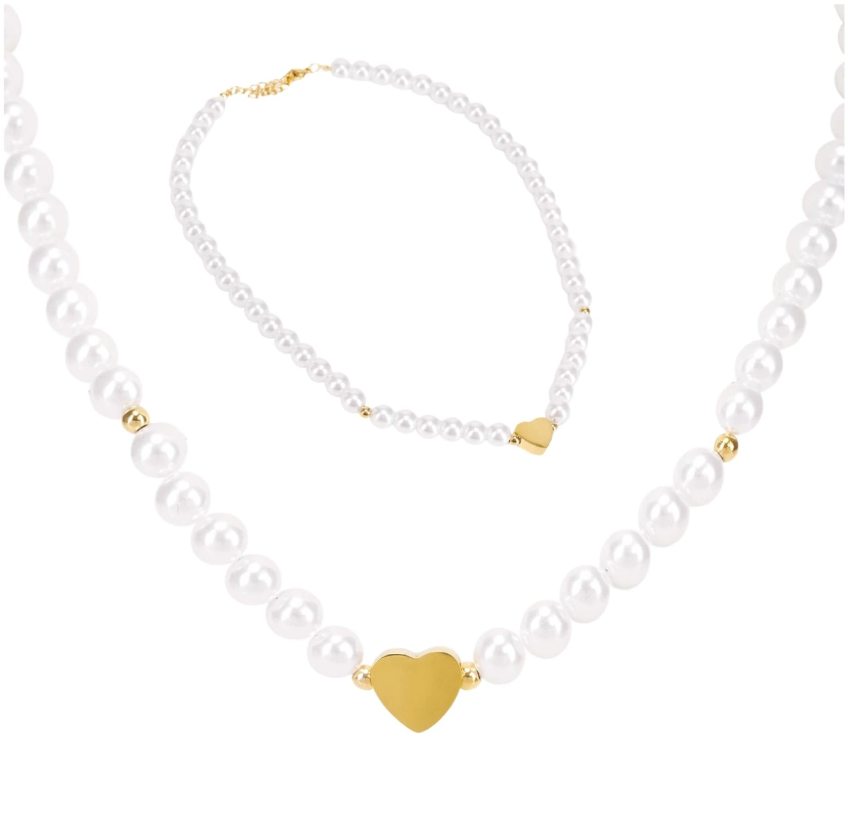 Colier de perle de aur din oțel chirurgical inima perle elegant