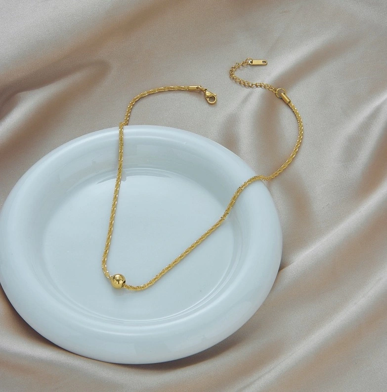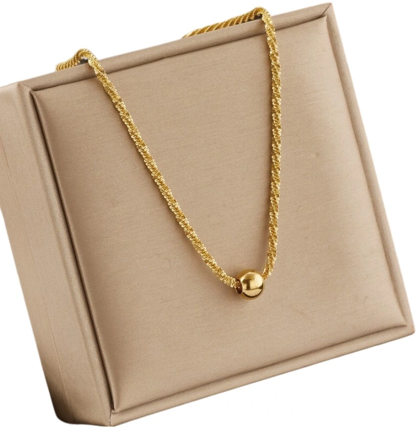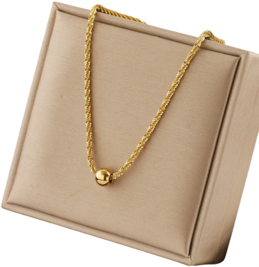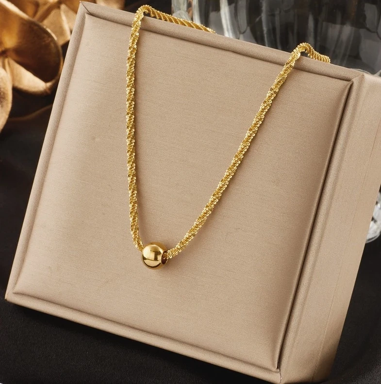Colierul cu bile din oțel chirurgical auriu frapant și delicat este o bijuterie de înaltă calitate care nu își pierde farmecul în ciuda trecerii timpului.