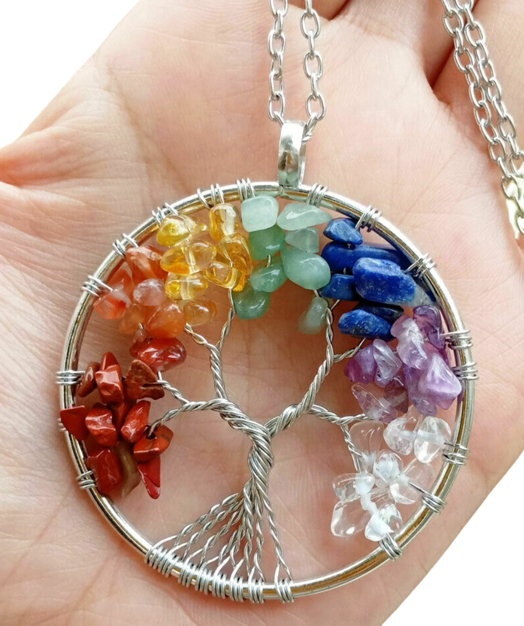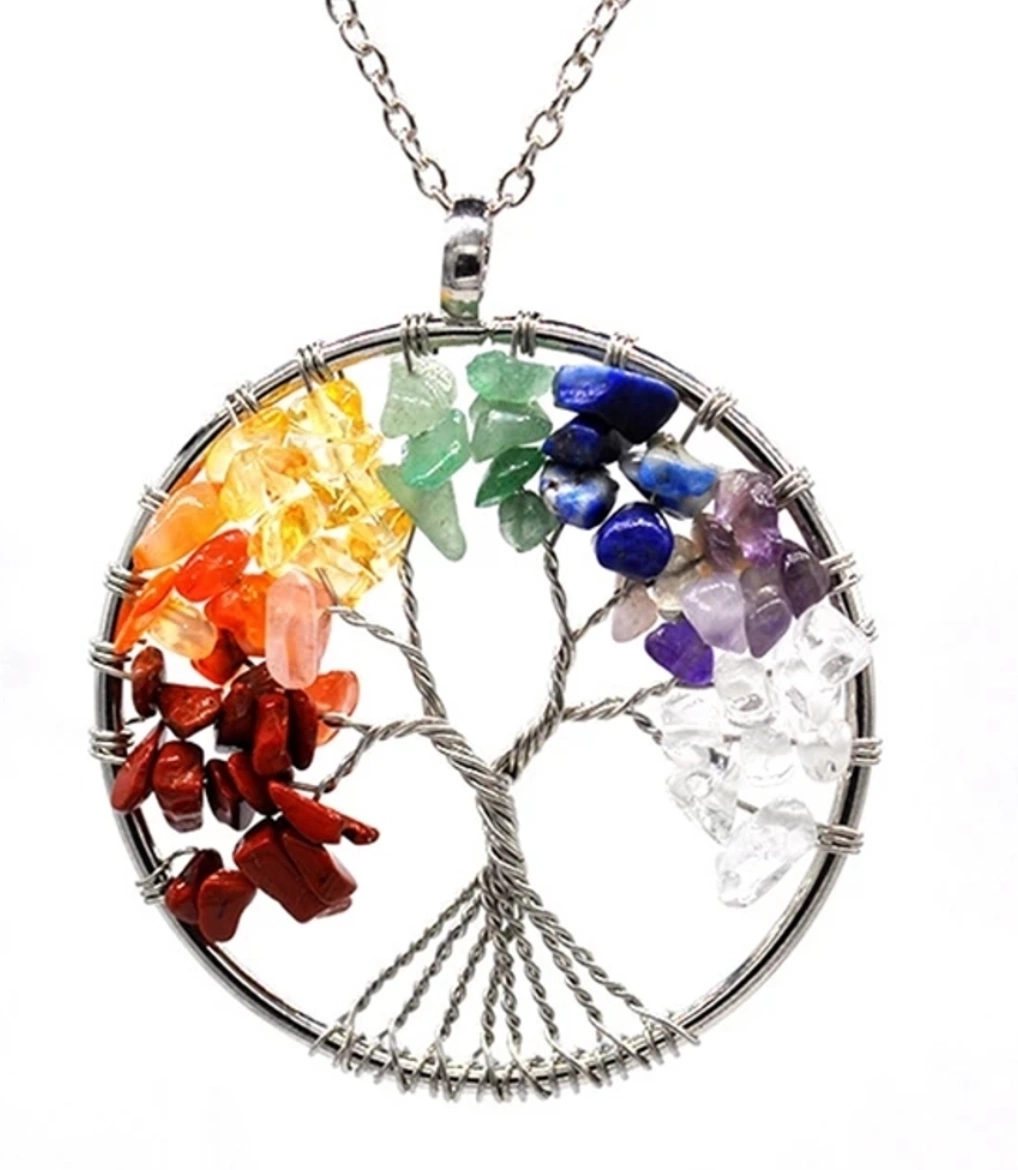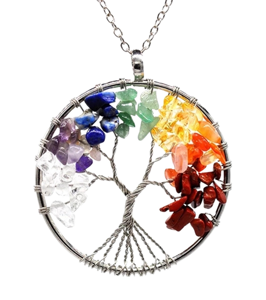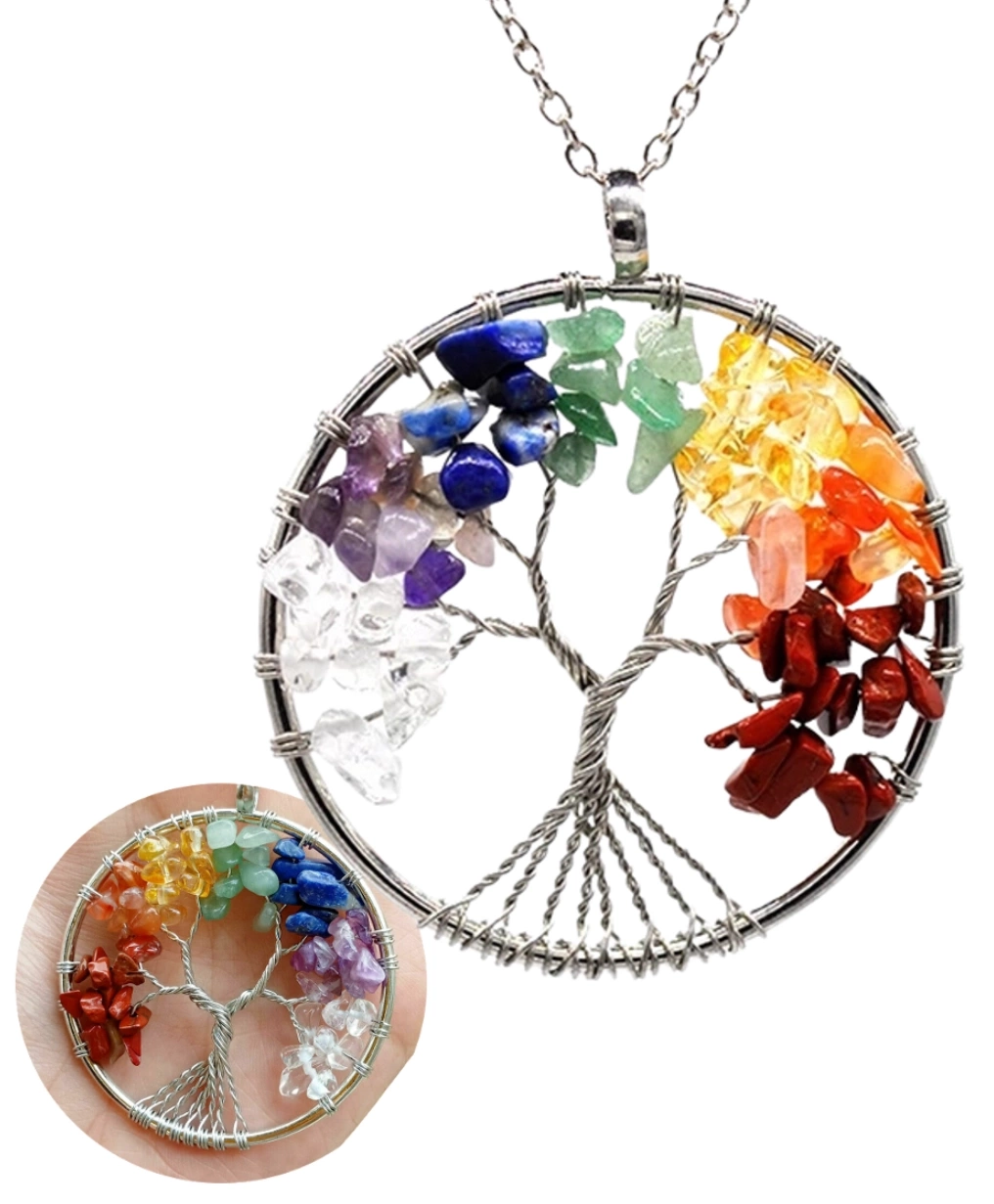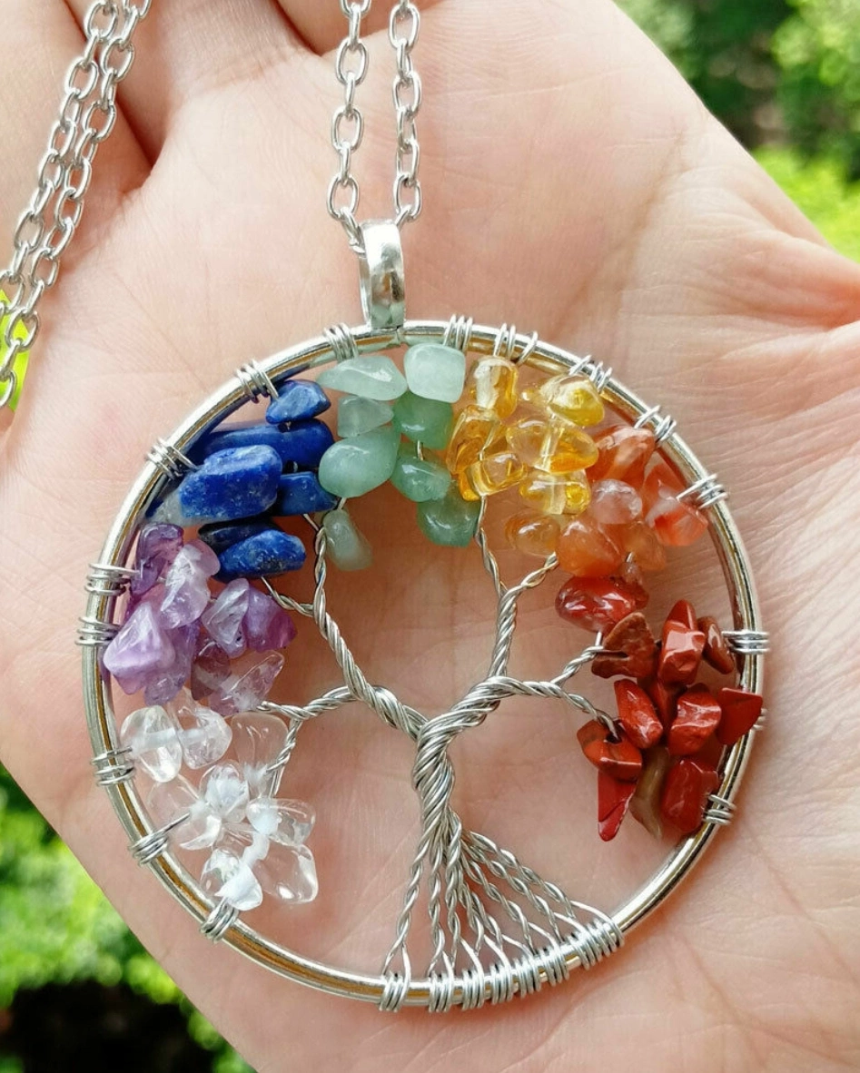 Colier din otel chirurgical, pomul fericirii, minerale colorate