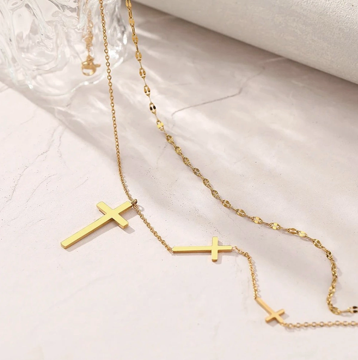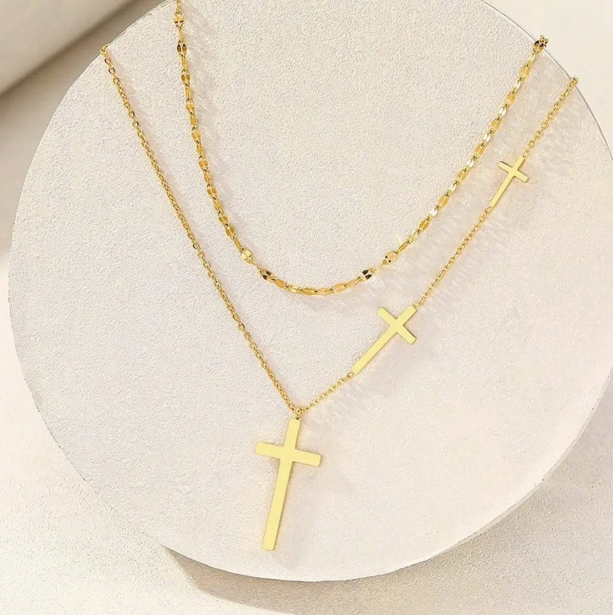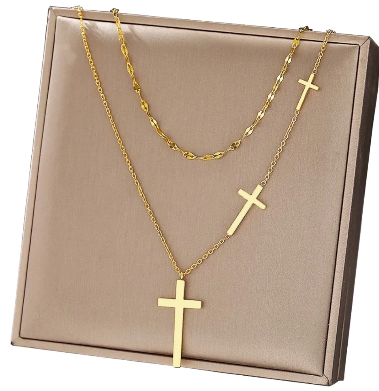 ✅ Colier dublu delicat: Designul dublu stratificat adaugă subtilitate și eleganță colierului, în timp ce pandantivele cu motiv de cruce introduc o notă la modă și contemporană.