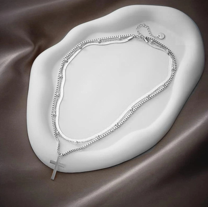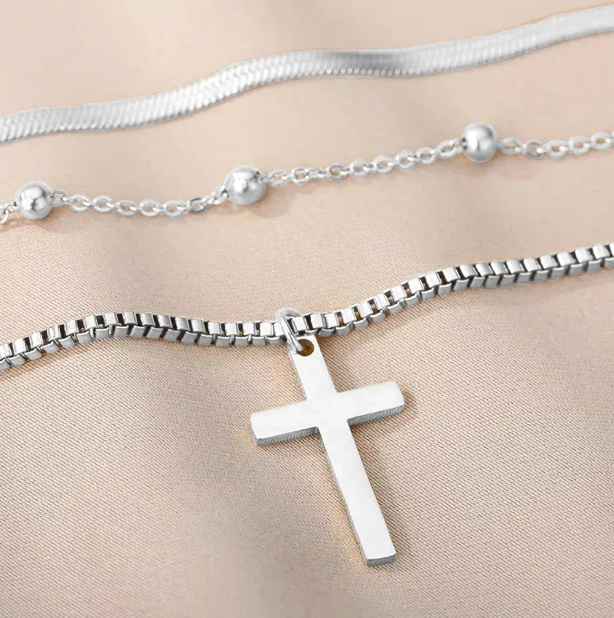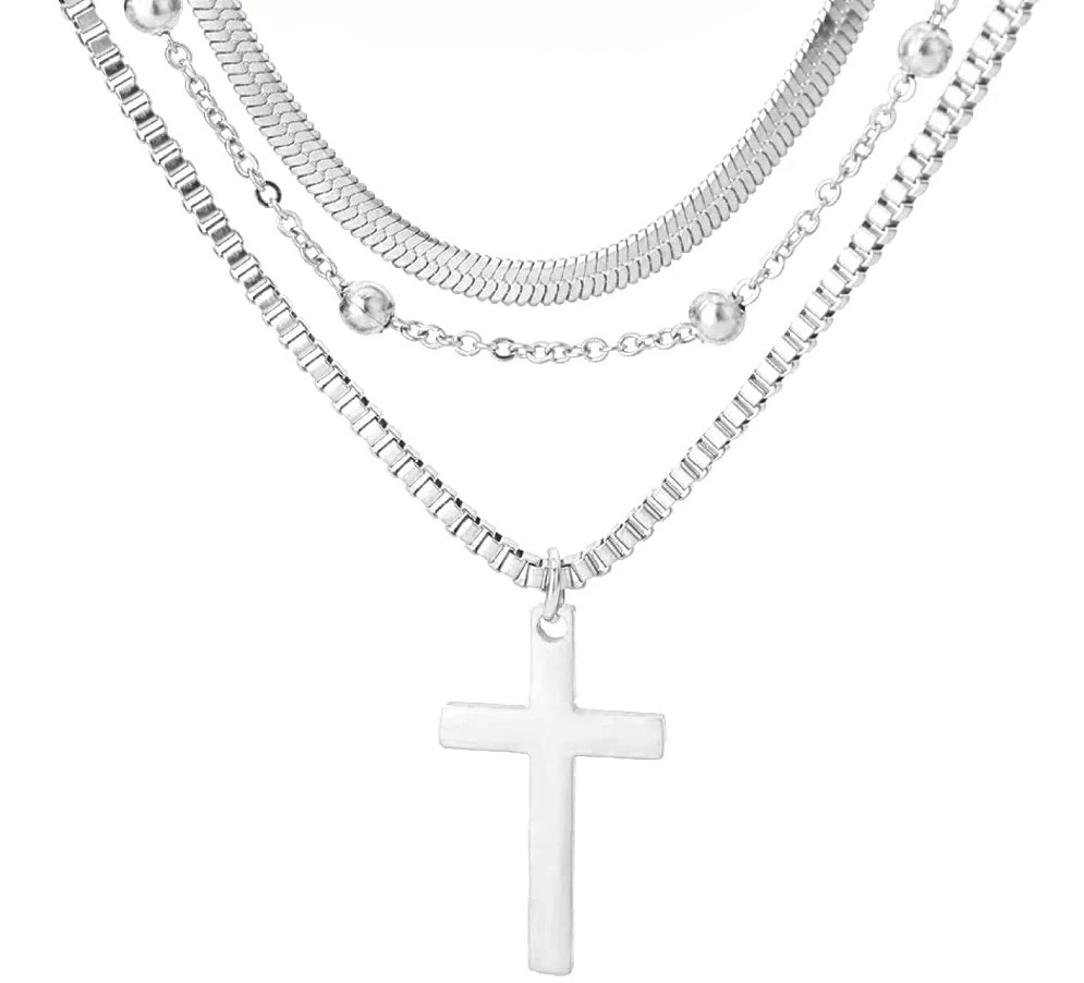 Colierul impresionant și elegant cu cruciuliță din oțel chirurgical multiplu argintiu este un produs de înaltă calitate, care este ales cu plăcere de femeile cărora le place să fie recunoscute în mulțime.