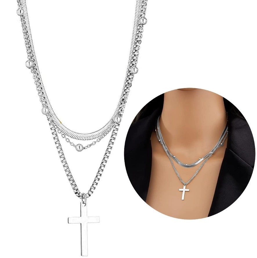 Colier elegant cu cruce din oțel chirurgical multi-argintiu