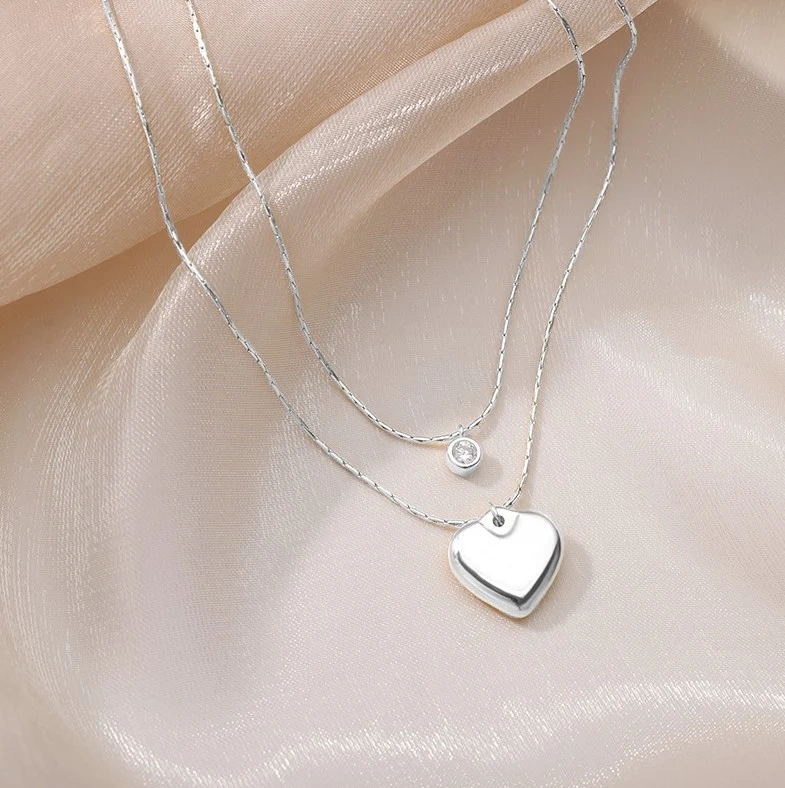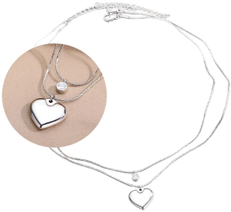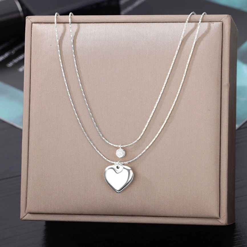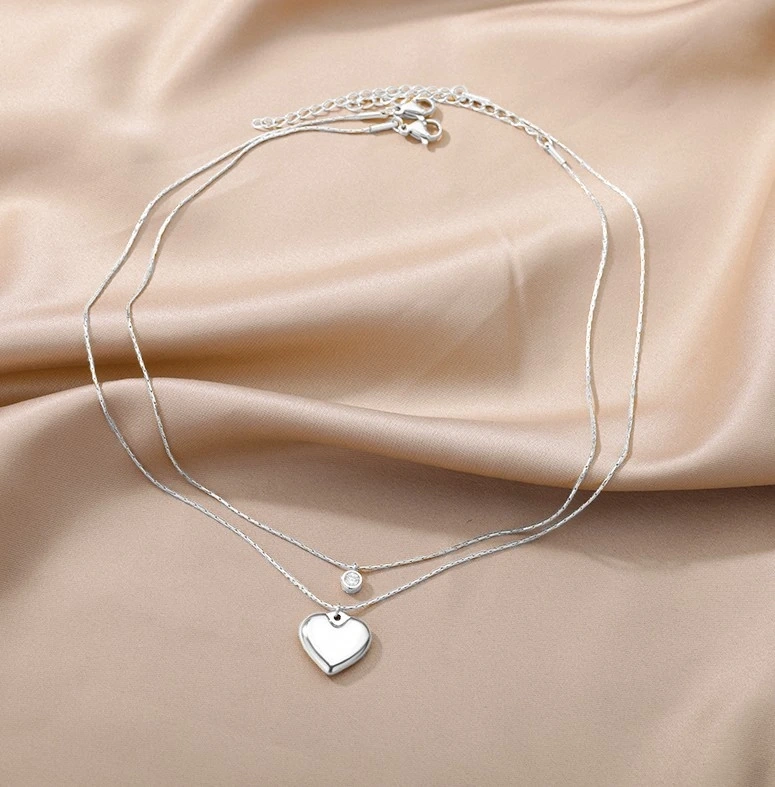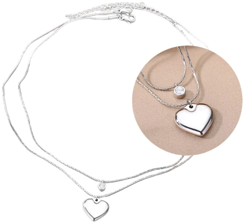 O bijuterie frumoasă precum elegantul colier cu inimă dublă din oțel chirurgical și argint din magazinul nostru online este foarte populară. Acesta este prevăzut cu două lanțuri de tip adder.