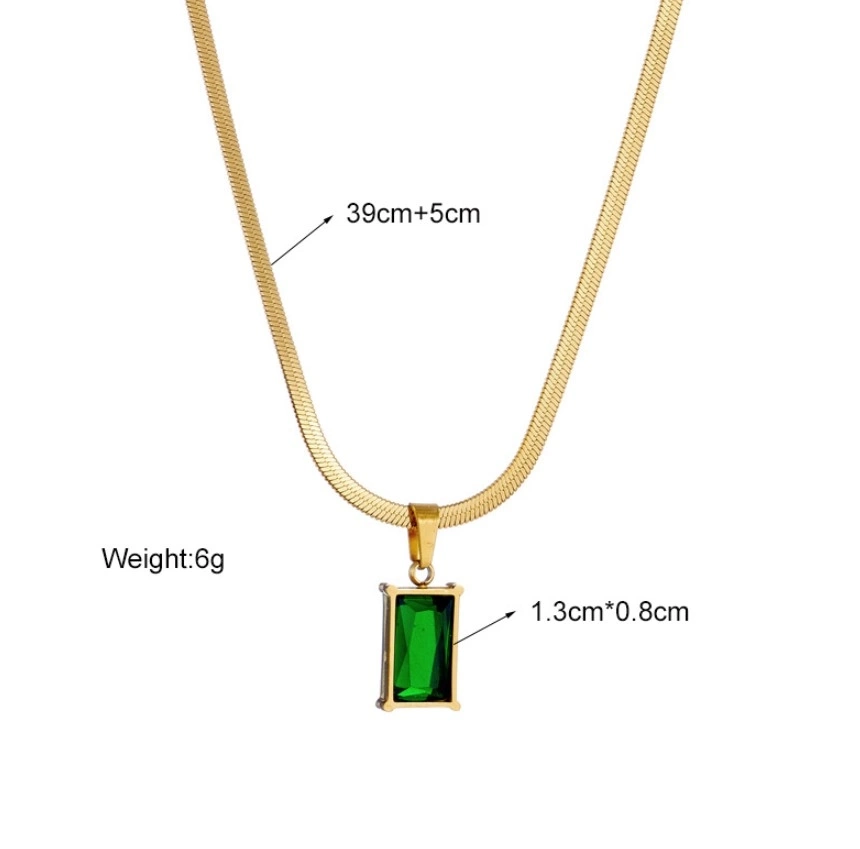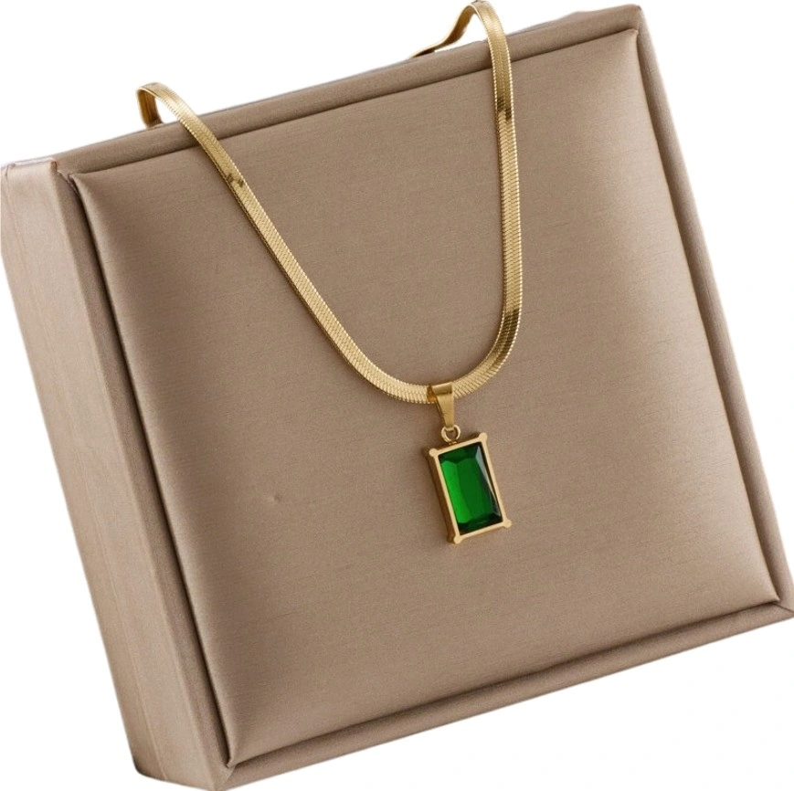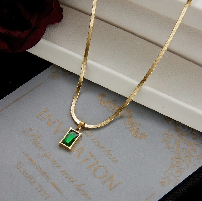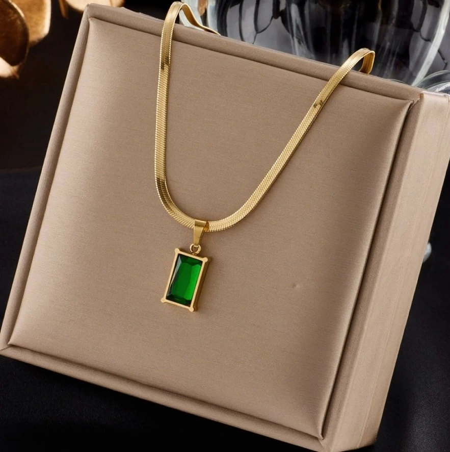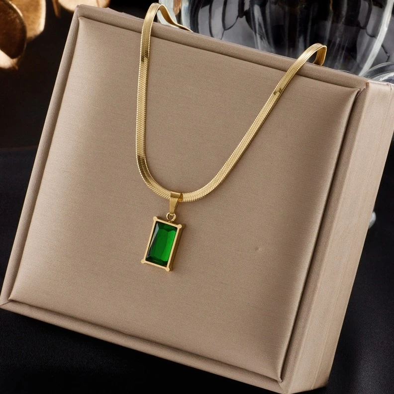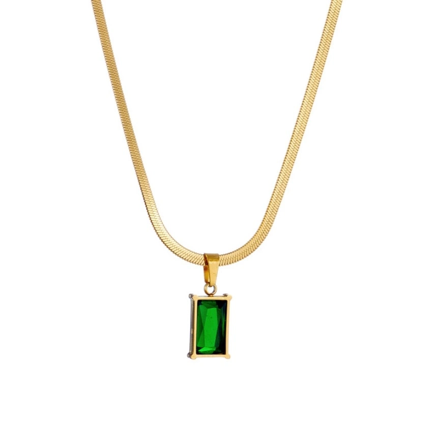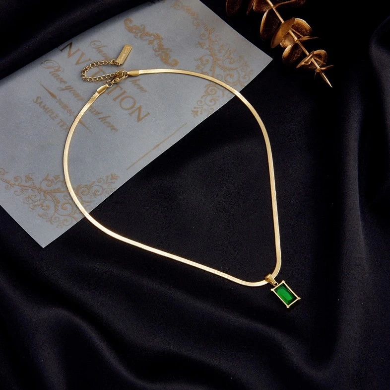 Colier auriu elegant adder oțel chirurgical piatră verde - bijuterie perfectă pentru ocazii speciale.