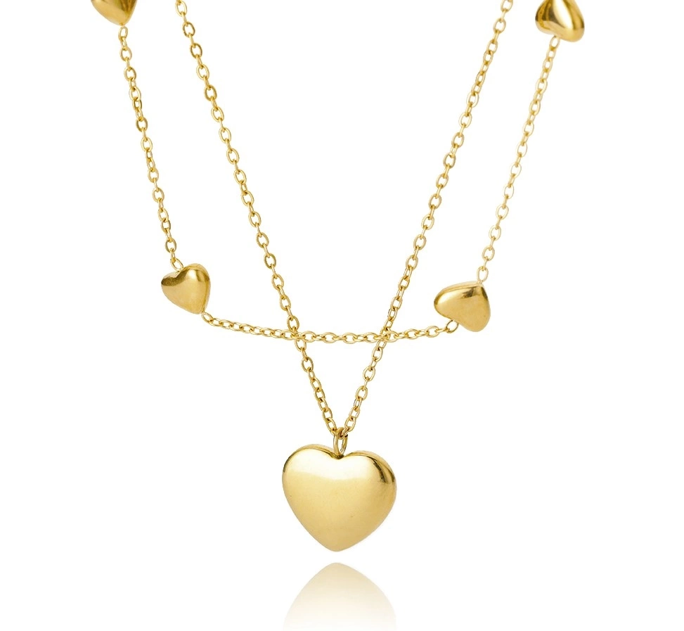 Colier dublu auriu elegant inimi din oțel chirurgical - decorațiuni de bijuterii la modă și de bun gust.