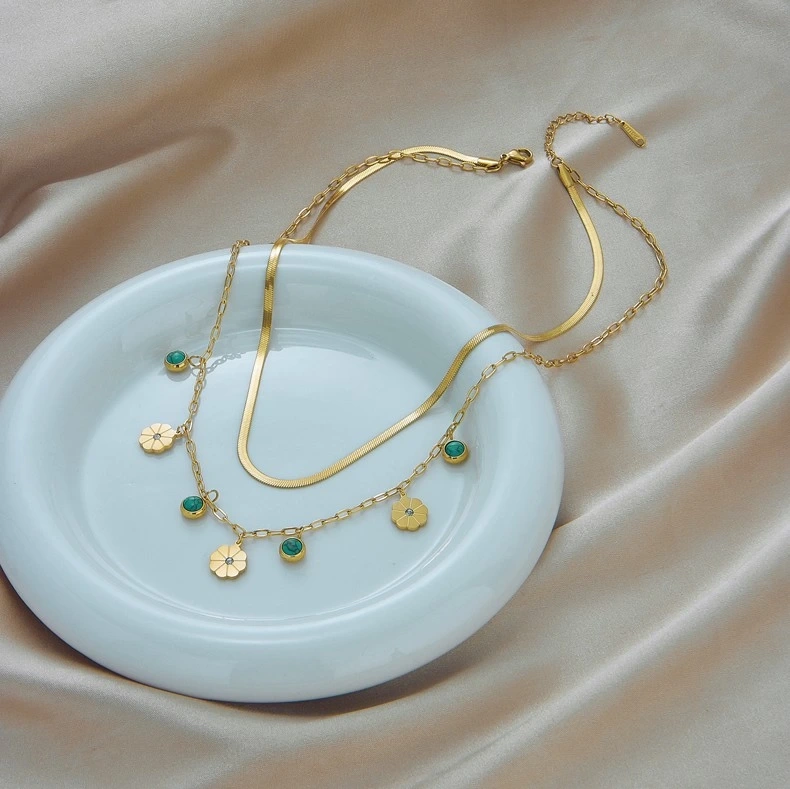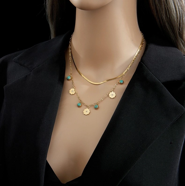 Colierul dublu elegant din oțel chirurgical auriu pe care îl recomandăm este un produs cu un design remarcabil. Colierul este format din două lanțuri unite între ele.