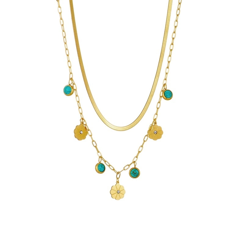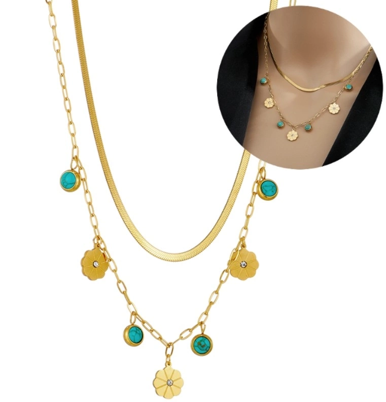 Colier dublu auriu elegant pandantiv din oțel chirurgical - perfect pentru un cadou