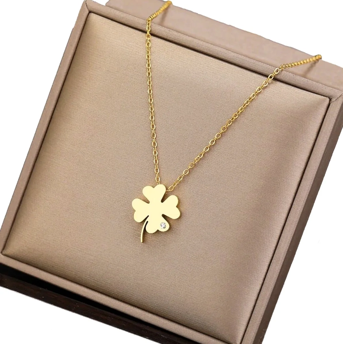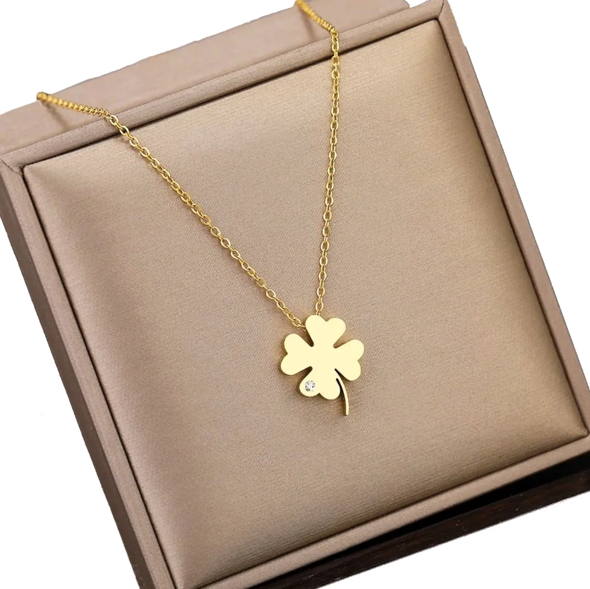 Colier elegant din aur, oțel chirurgical, trifoi, zirconiu