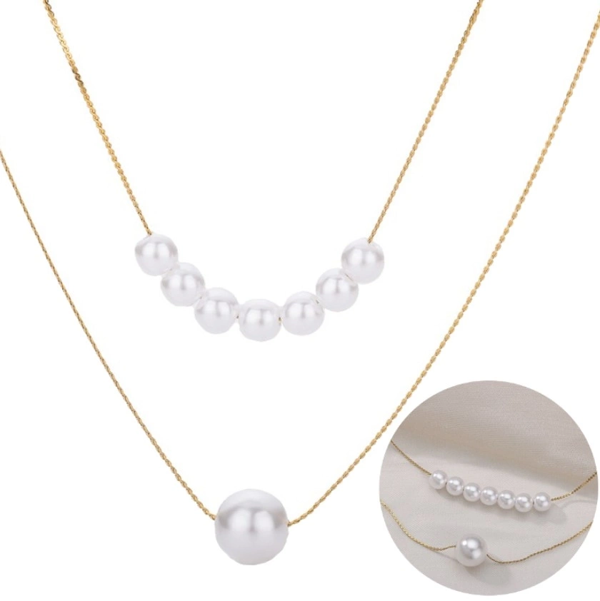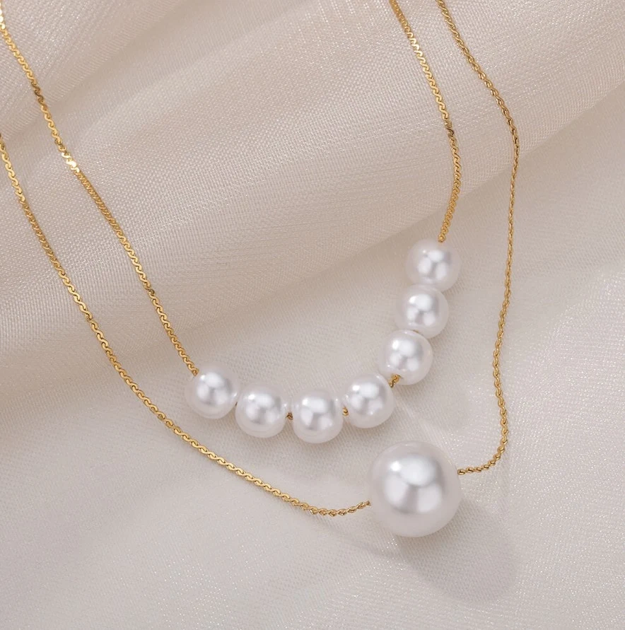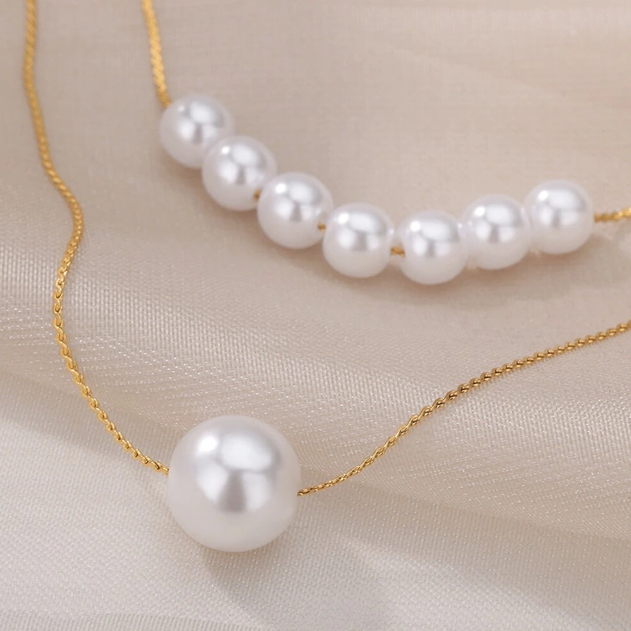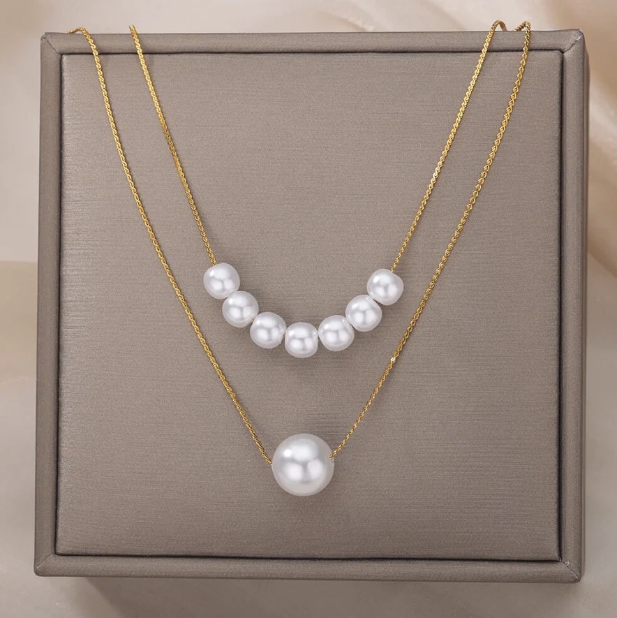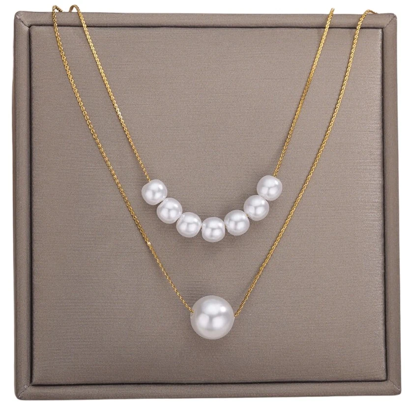 Frumosul colier elegant multi perle este fabricat din oțel chirurgical placat cu aur de 18k. Acesta este extrem de durabil, astfel încât, în ciuda utilizării frecvente, nu se deformează și nu își pierde tăietura.