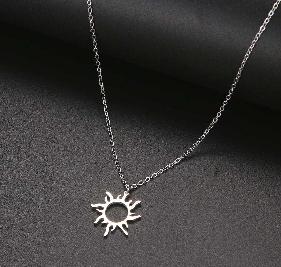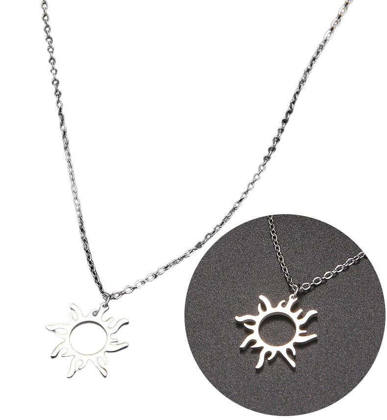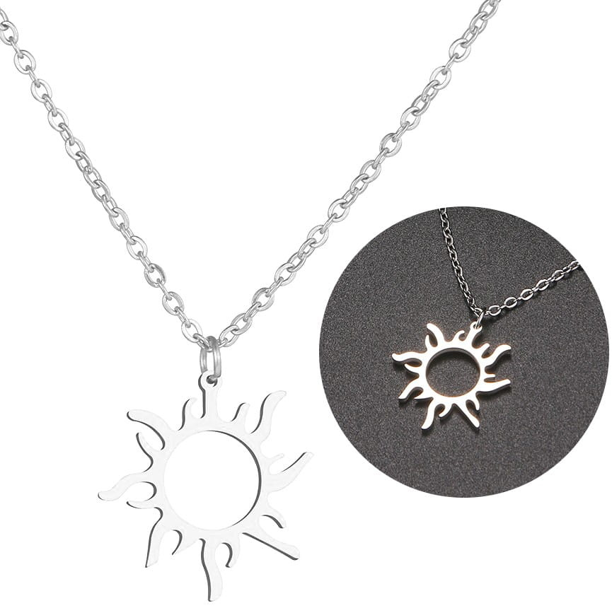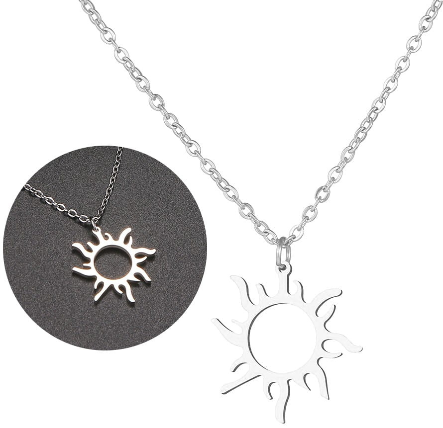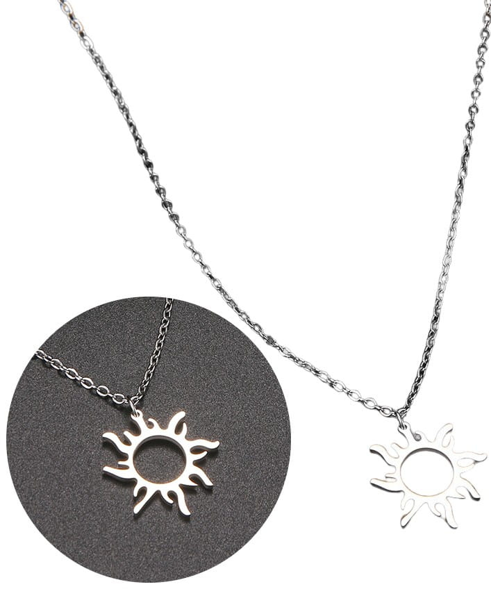 Recomandat de magazinul nostru online, colierul soare argintiu elegant din oțel chirurgical are un cârlig practic, puternic, care facilitează prinderea și desfacerea acestei bijuterii.