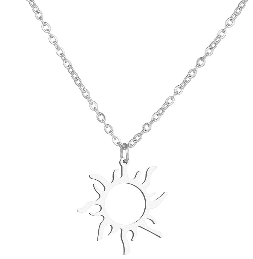 Recomandat de magazinul nostru online, colierul etnic elegant soare din oțel chirurgical, este disponibil într-o culoare argintie clasică.