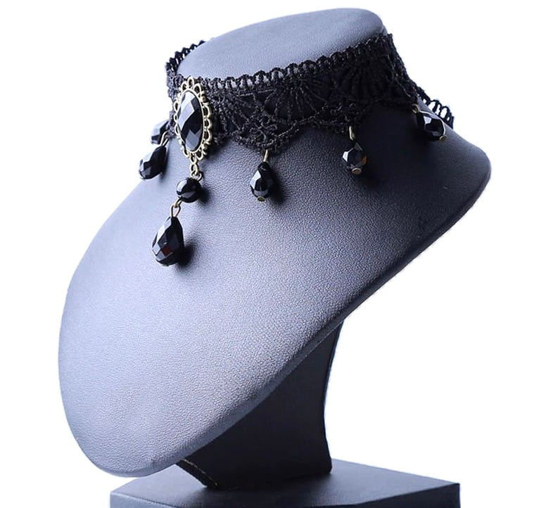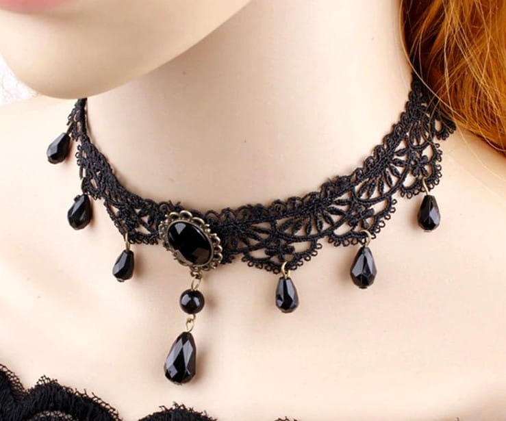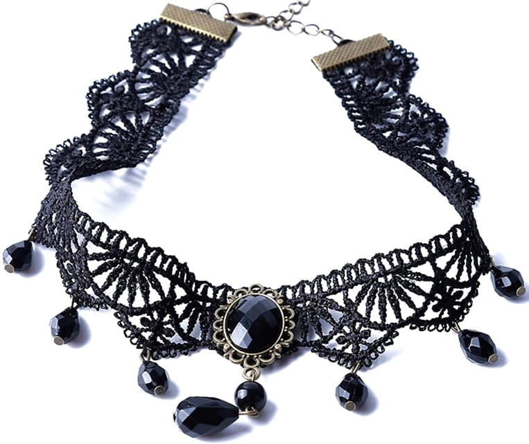 Nu toată lumea iubește dantela, dar cei care o iubesc vor fi cu siguranță fermecați de acest colier. Lungimea acestei podoabe este de aproximativ 31 de centimetri, dar poate fi scurtată cu încă 5 centimetri. Lățimea colierului este de aproximativ 5 centimetri.