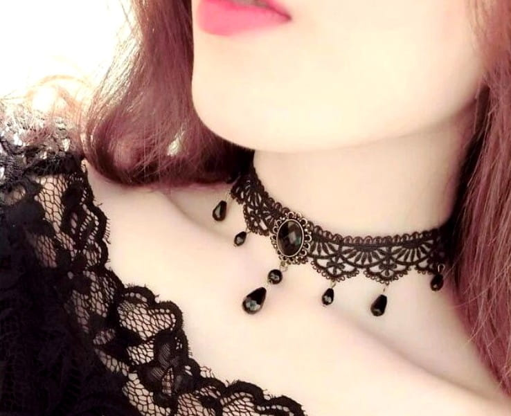 Colierul este realizat din dantelă neagră foarte delicată, decorată cu lanțuri mici și un pandantiv impresionant, care reflectă frumos lumina. Acest mic detaliu conferă colierului un caracter total diferit și arată cu adevărat fantastic.
