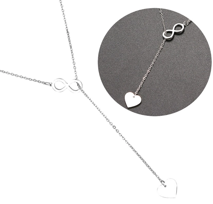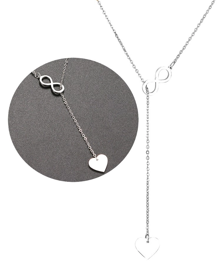 Bijuteriile la modă, cum ar fi colierul elegant infinit inimă, sunt fabricate din oțel chirurgical robust în argint, astfel încât să arate încă minunat în ciuda trecerii timpului.