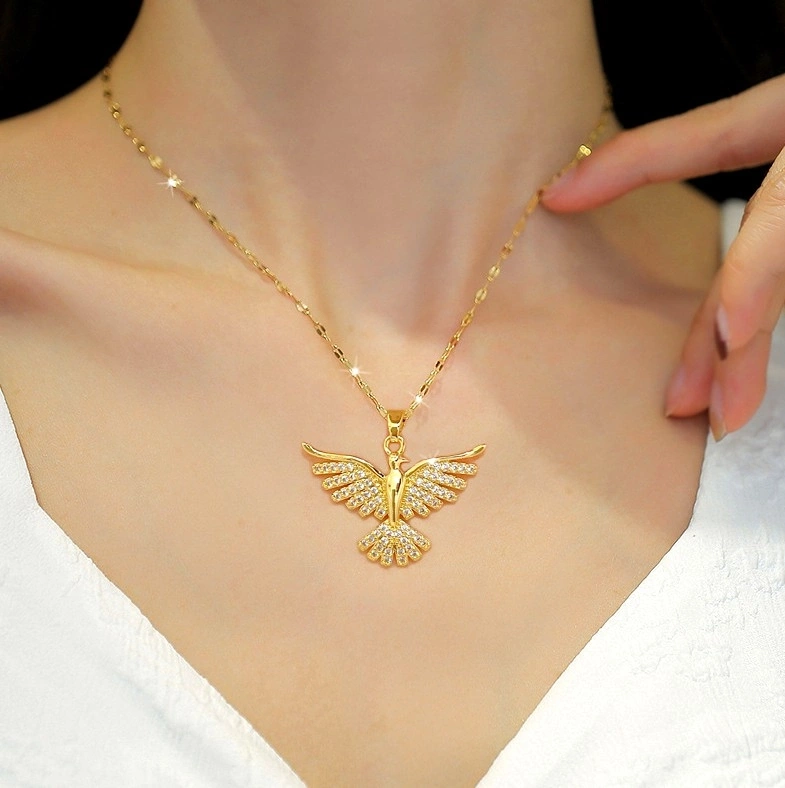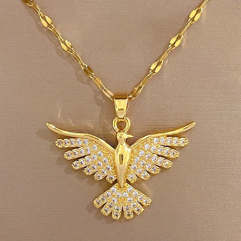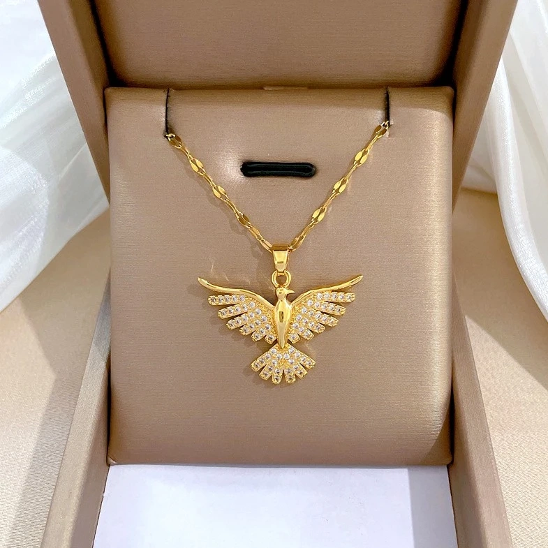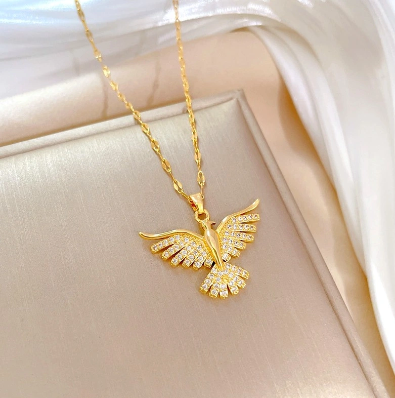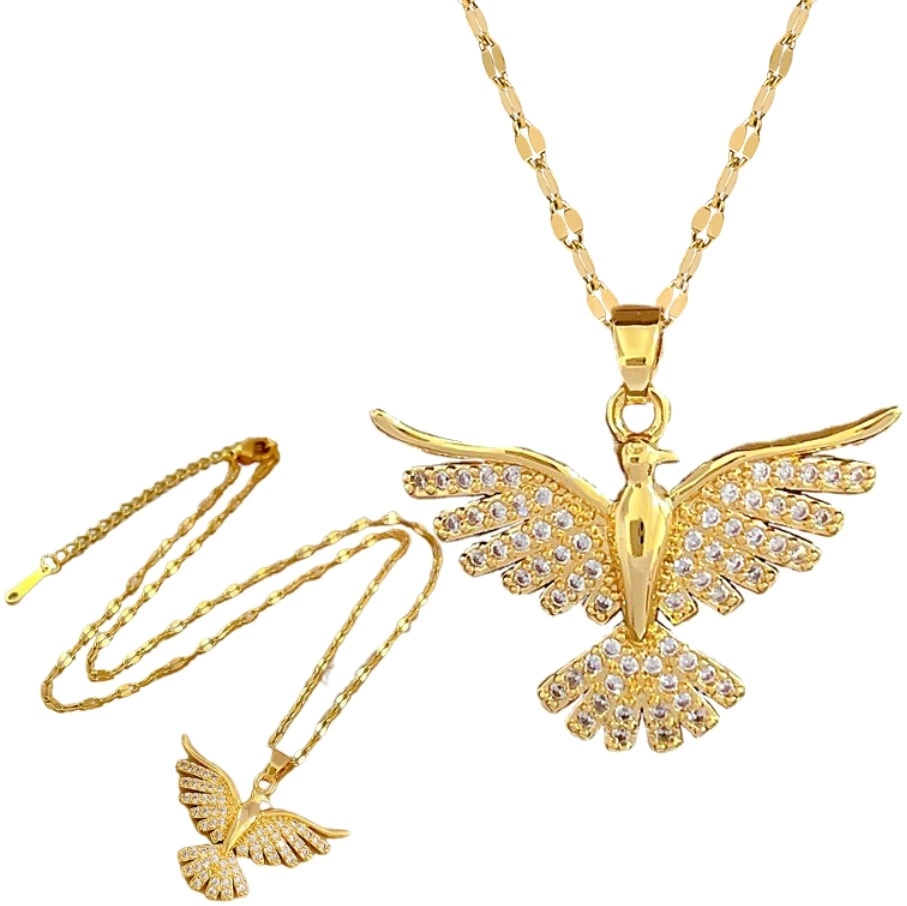 Colier pasăre din aur, oțel chirurgical cu zirconi