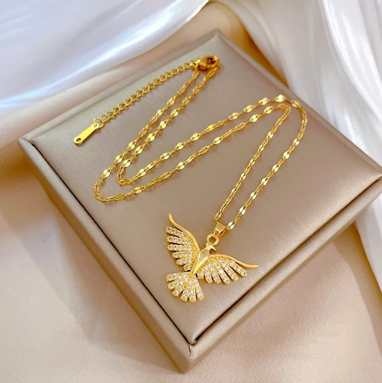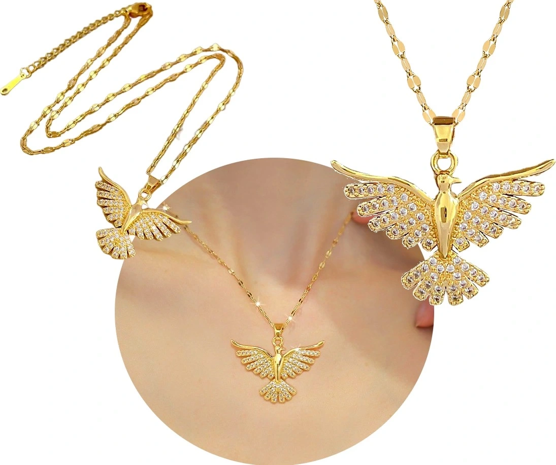 Colier pasăre de aur din oțel chirurgical cu zirconii - perfect pentru fiecare femeie.