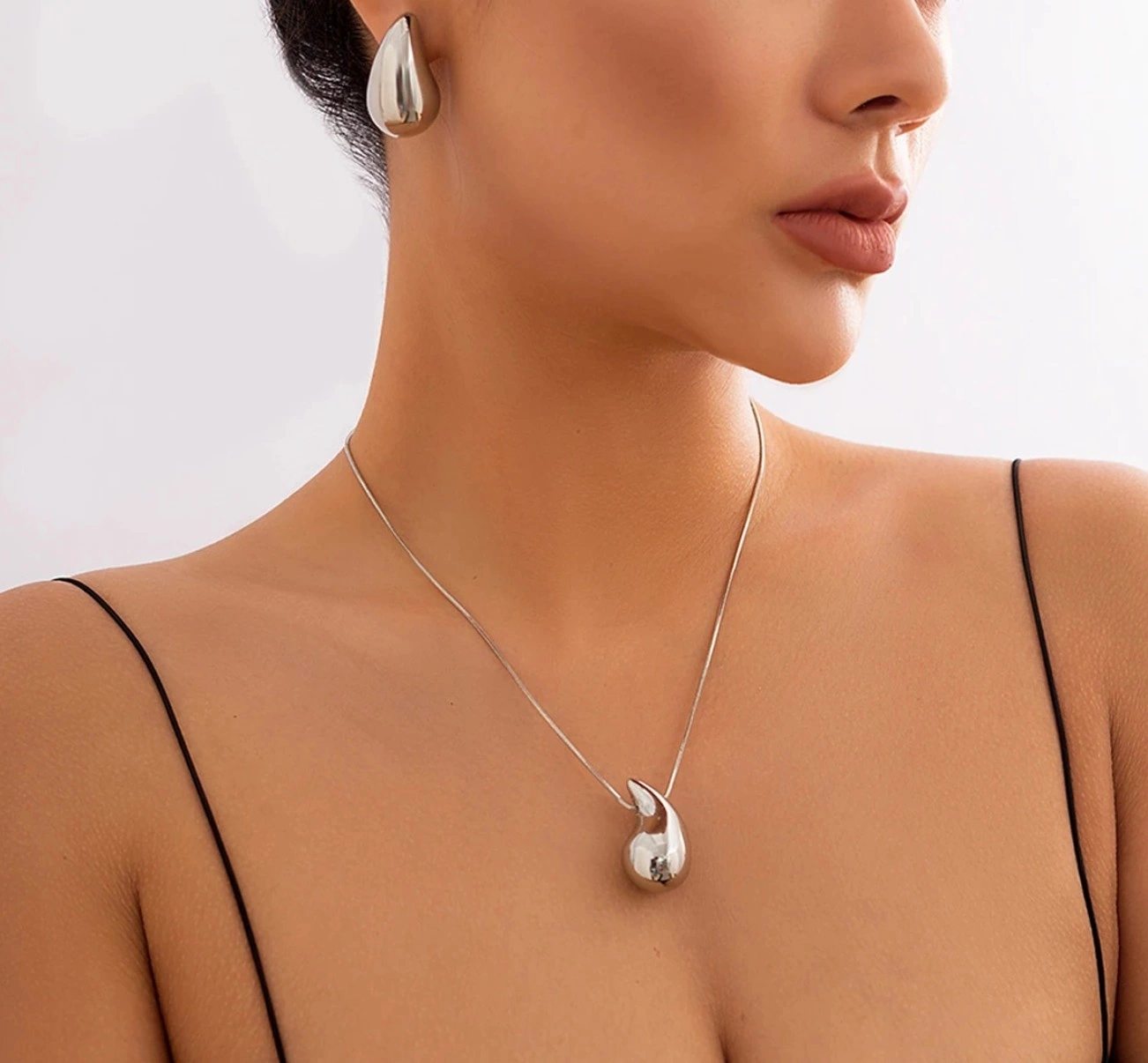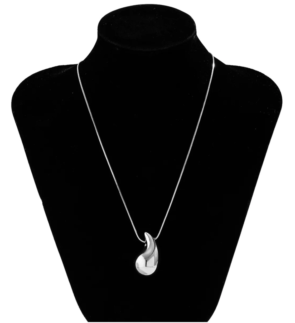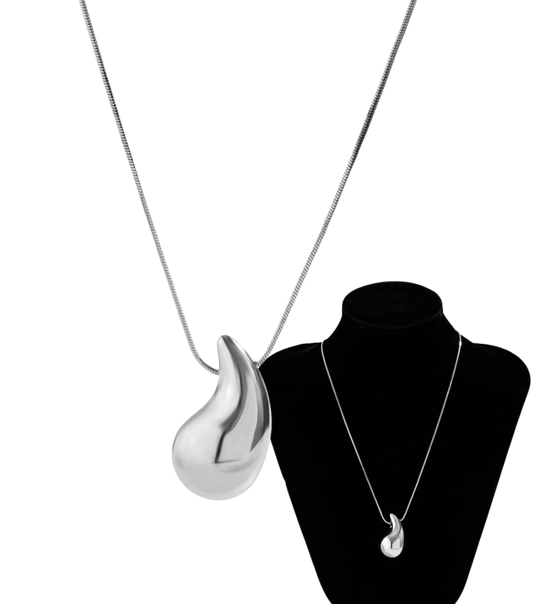 Lanțul cu pandantiv în formă de lacrimă este un accesoriu la modă care se potrivește perfect atât cu ținutele elegante, cât și cu stilul de zi cu zi. Colierul are o lungime de 45 cm, cu posibilitatea de a fi prelungit cu încă 5 cm, ceea ce îi permite să se potrivească diferitelor decolteuri. Pandantivul în formă de lacrimă de 1,5 cm lungime adaugă delicatețe și clasă oricărui stil.