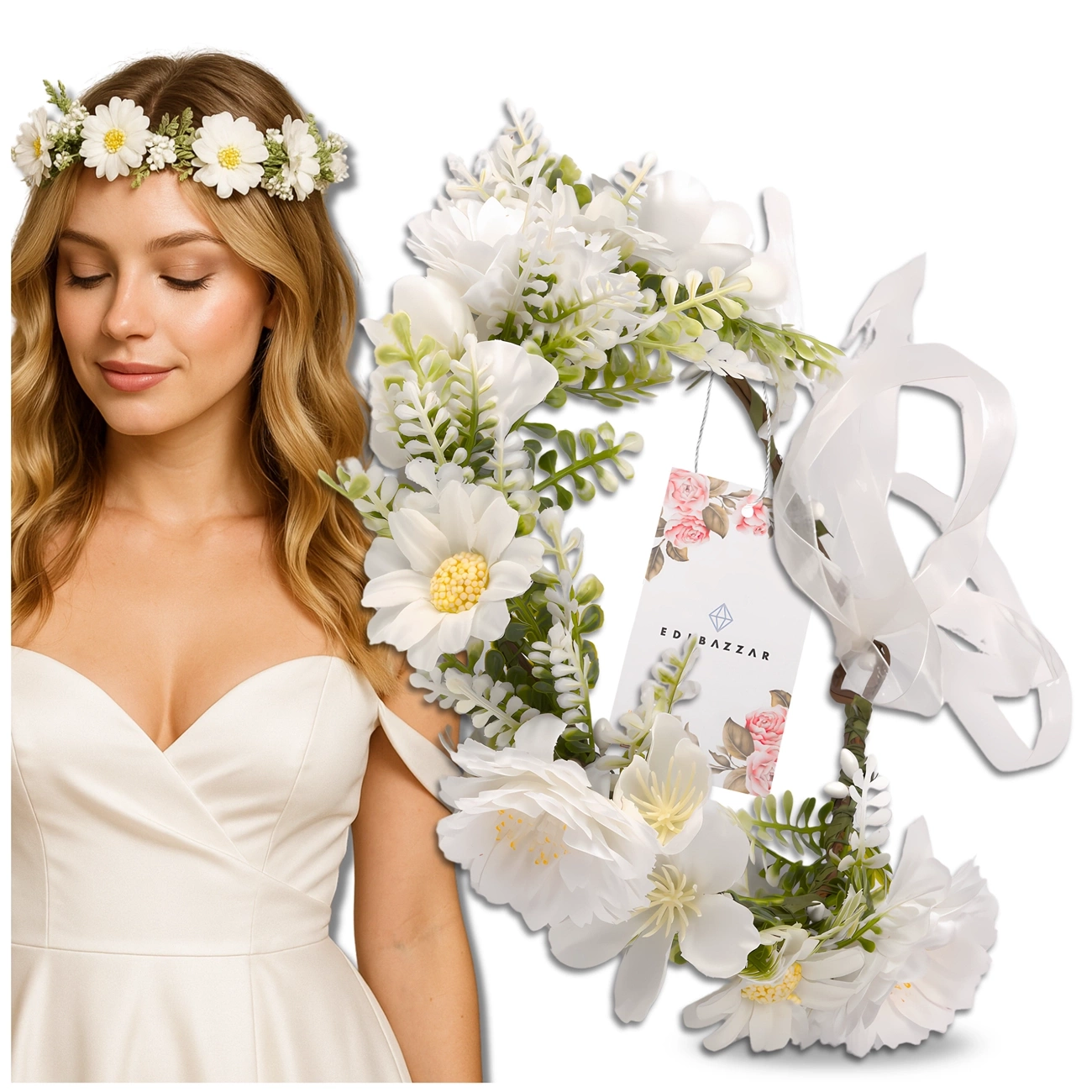 Nu ezitați - alegeți această coronă de nuntă subtilă, albă și adăugați un farmec unic stilului dvs.!