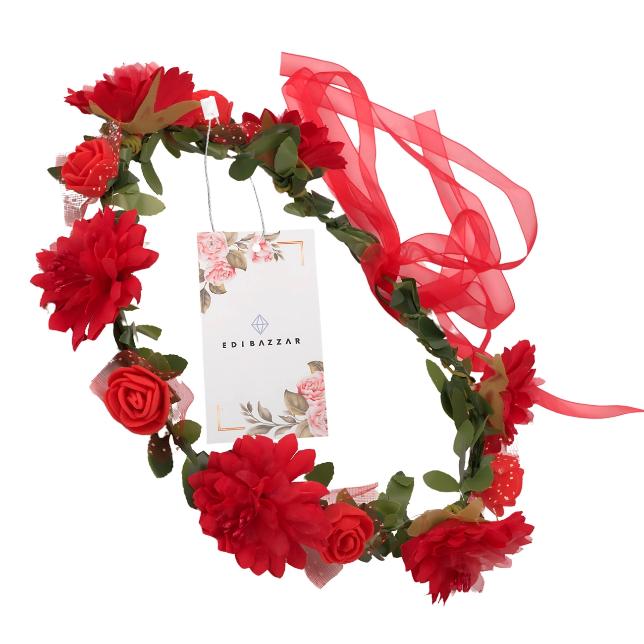 Produsul are un pandantiv EDIBAZZAR original și a fost ambalat cu grijă, făcându-l o idee grozavă de cadou pentru o prietenă, soră sau domnișoară de onoare. Circumferinta coroanei este de aproximativ 54 cm - datorita flexibilitatii se potriveste fiecarui cap.