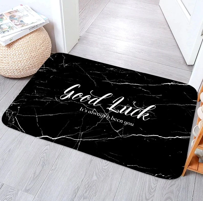 Produsul recomandat este disponibil în negru și imprimat cu relief marmorat și o inscripție în limba engleză. Covorașul absorbant antiderapant pe care îl oferim este foarte durabil și nu se decolorează atunci când este curățat sau când este expus la lumina soarelui.