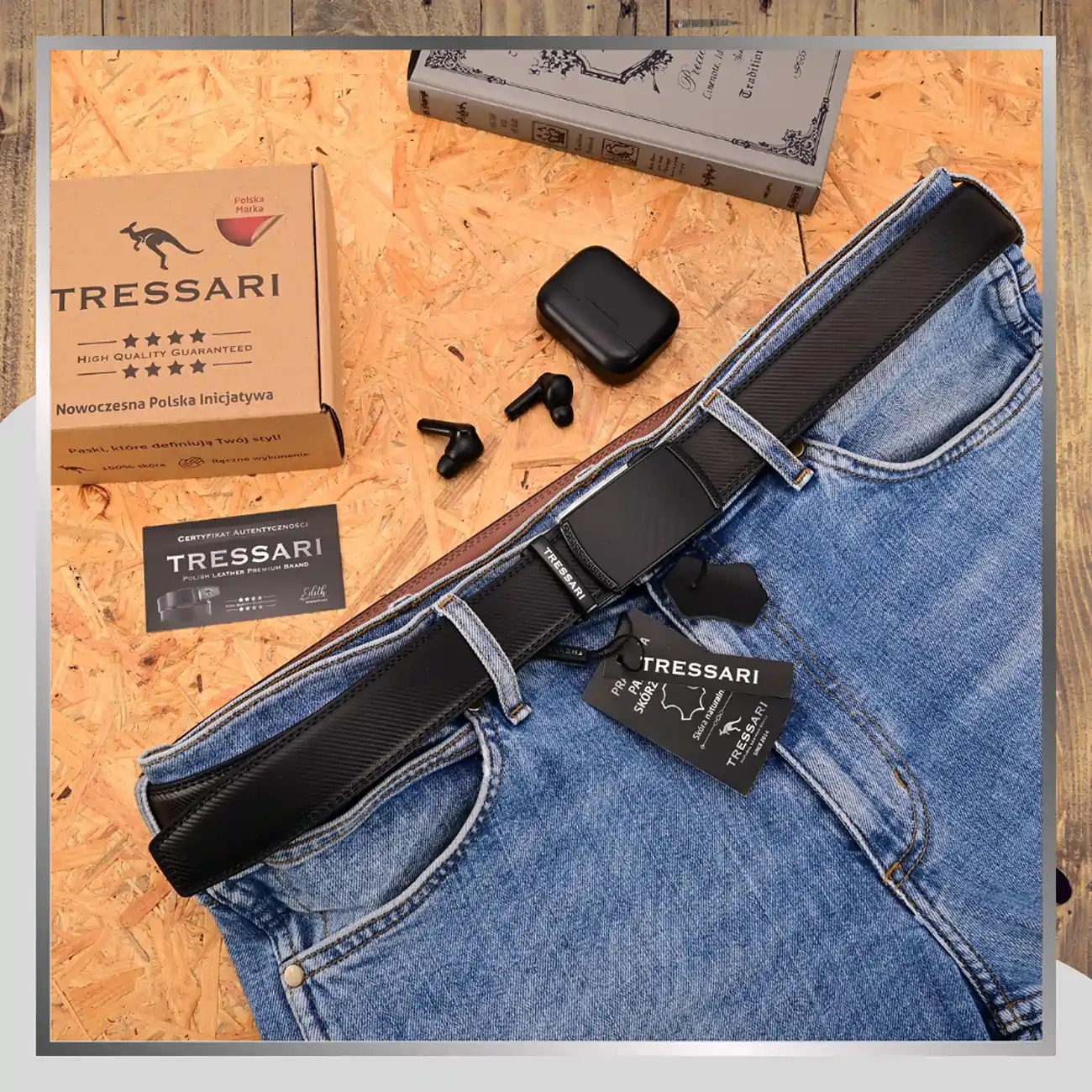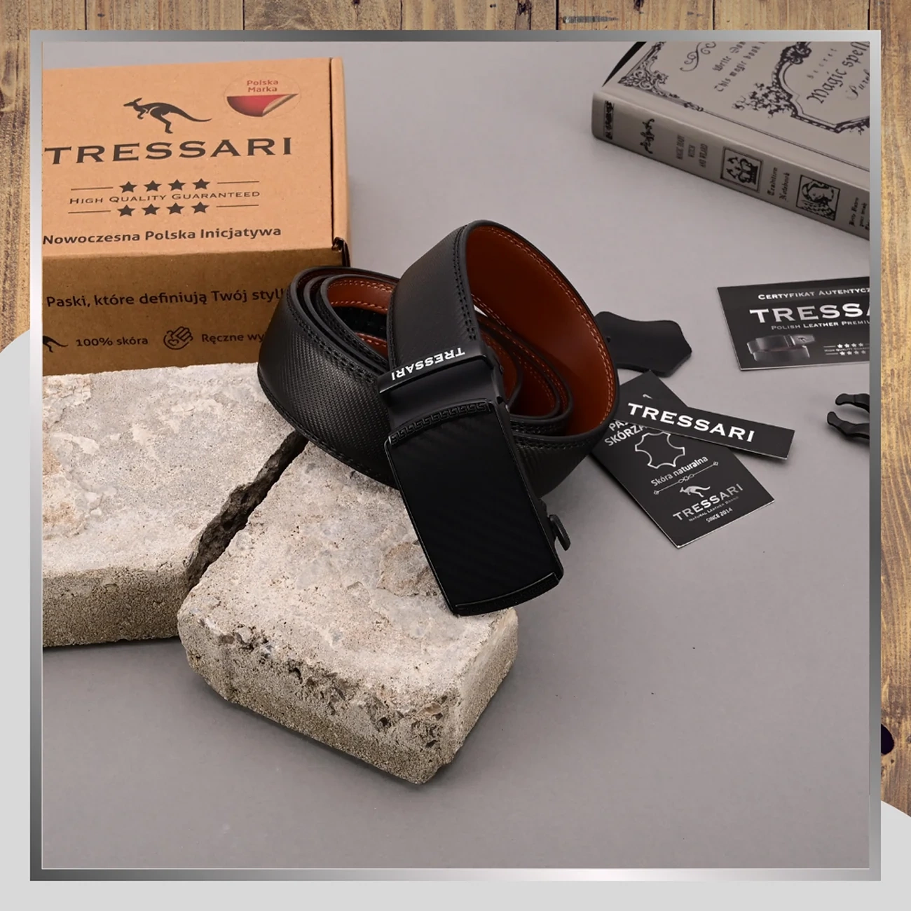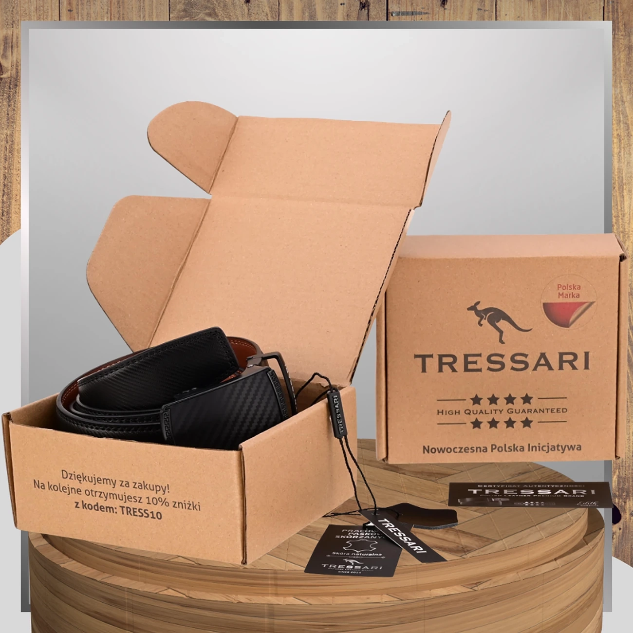 ✔ **Ambalaj elegant** - fiecare curea este ambalată într-o cutie elegantă cu sigla **TRESSARI**, ceea ce o face un cadou **ideal** pentru un bărbat.