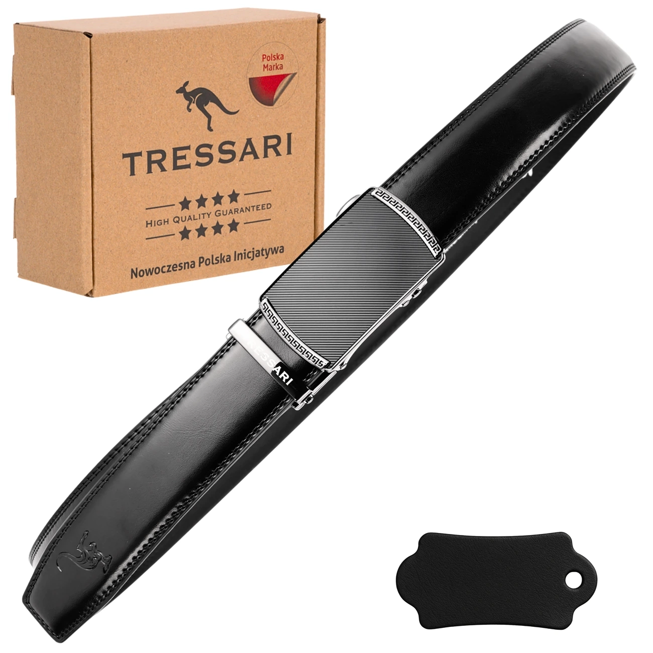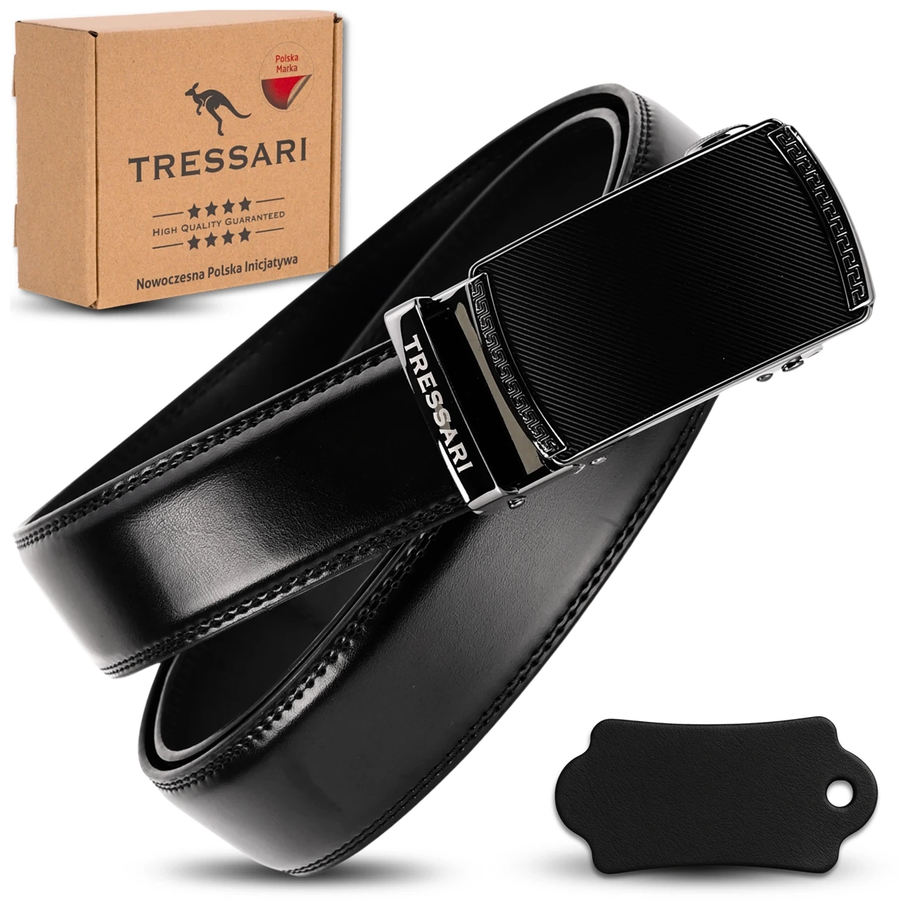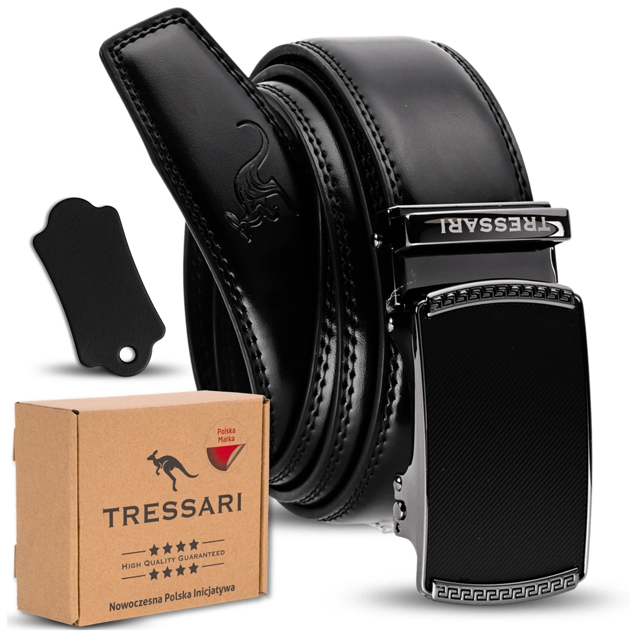 Curea automată din piele pentru pantaloni TRESSARI pentru bărbați, neagră, 120 cm