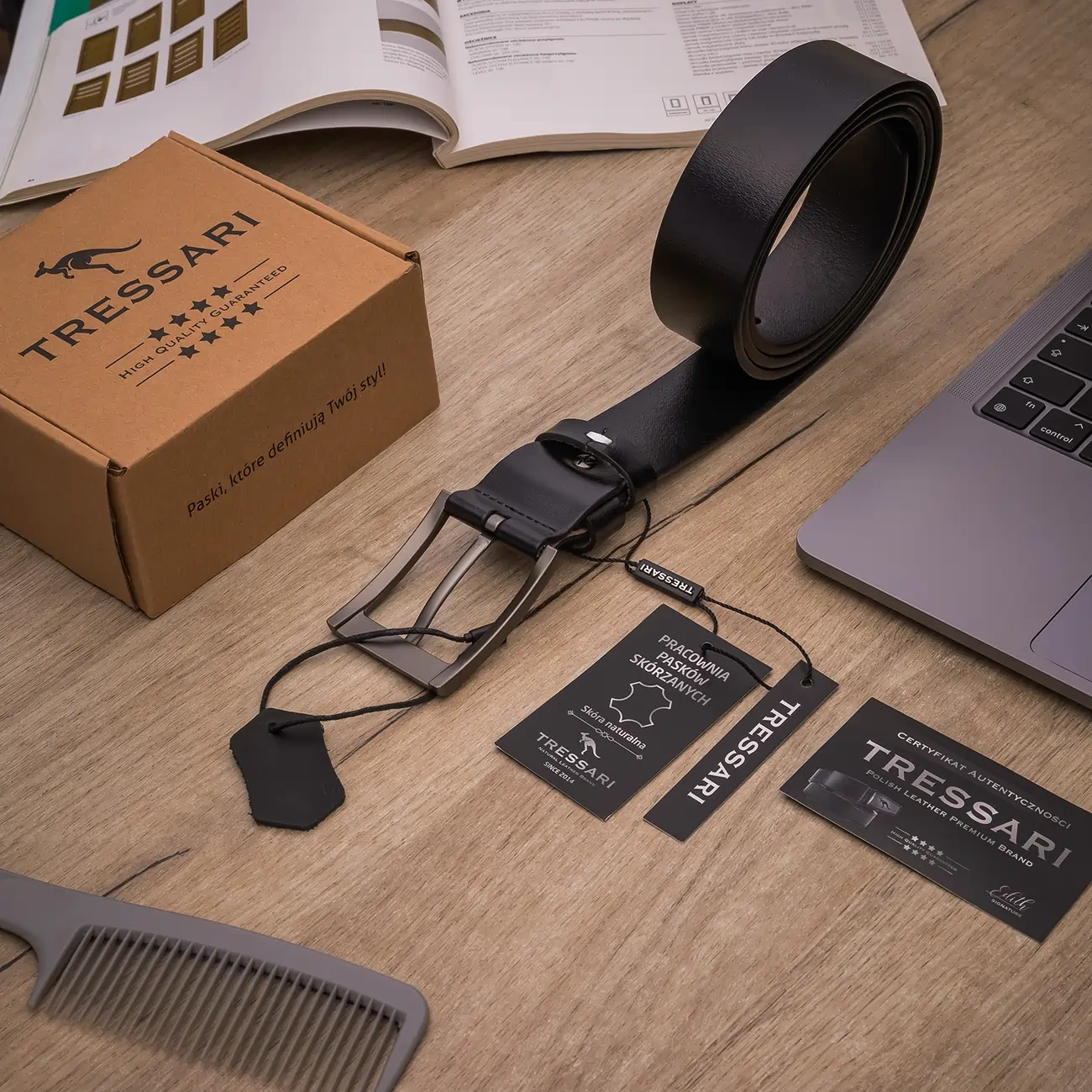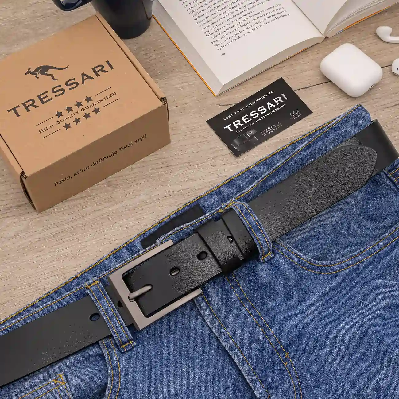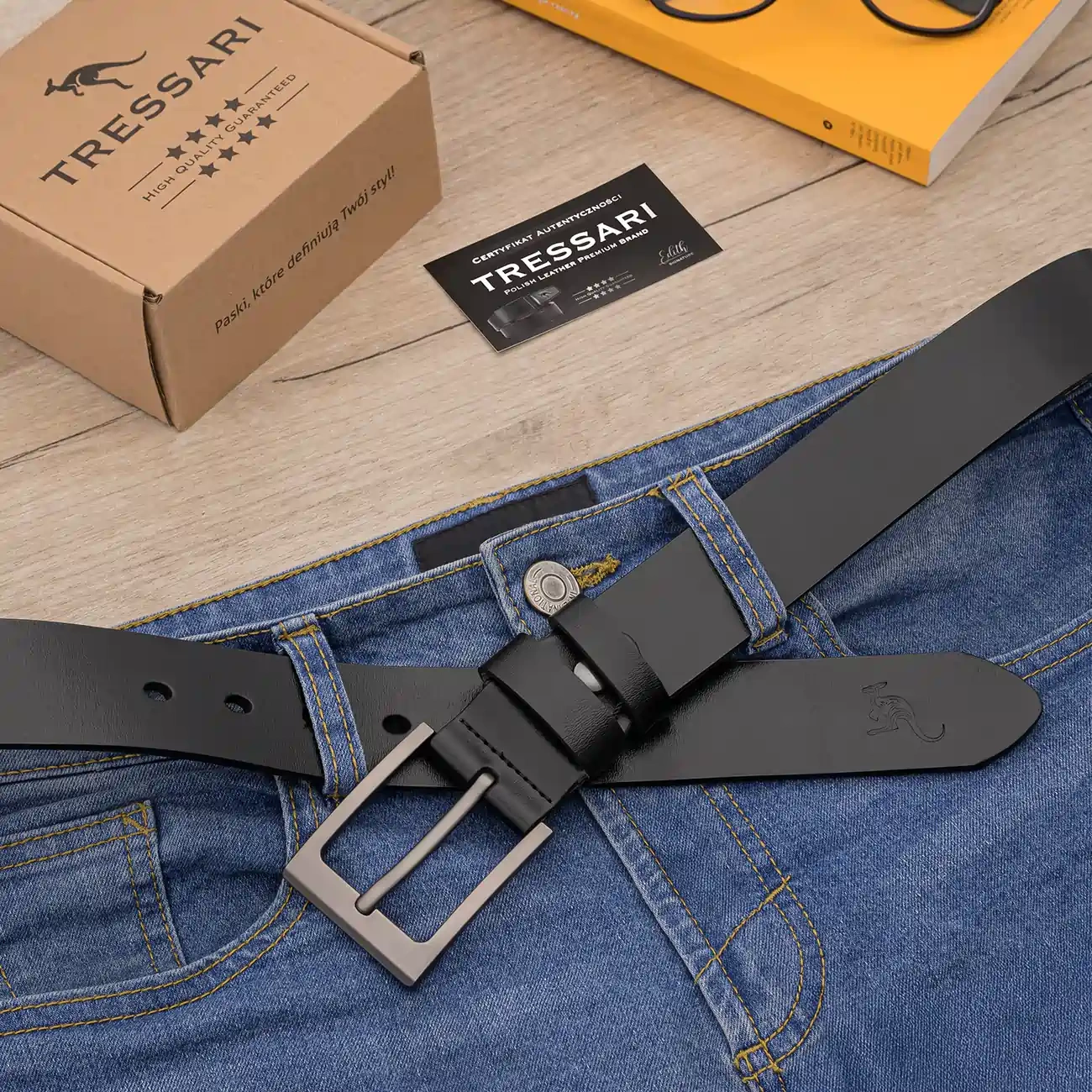 Curea barbati din piele, 100% piele naturala, neagra, pentru pantaloni TRESSARI