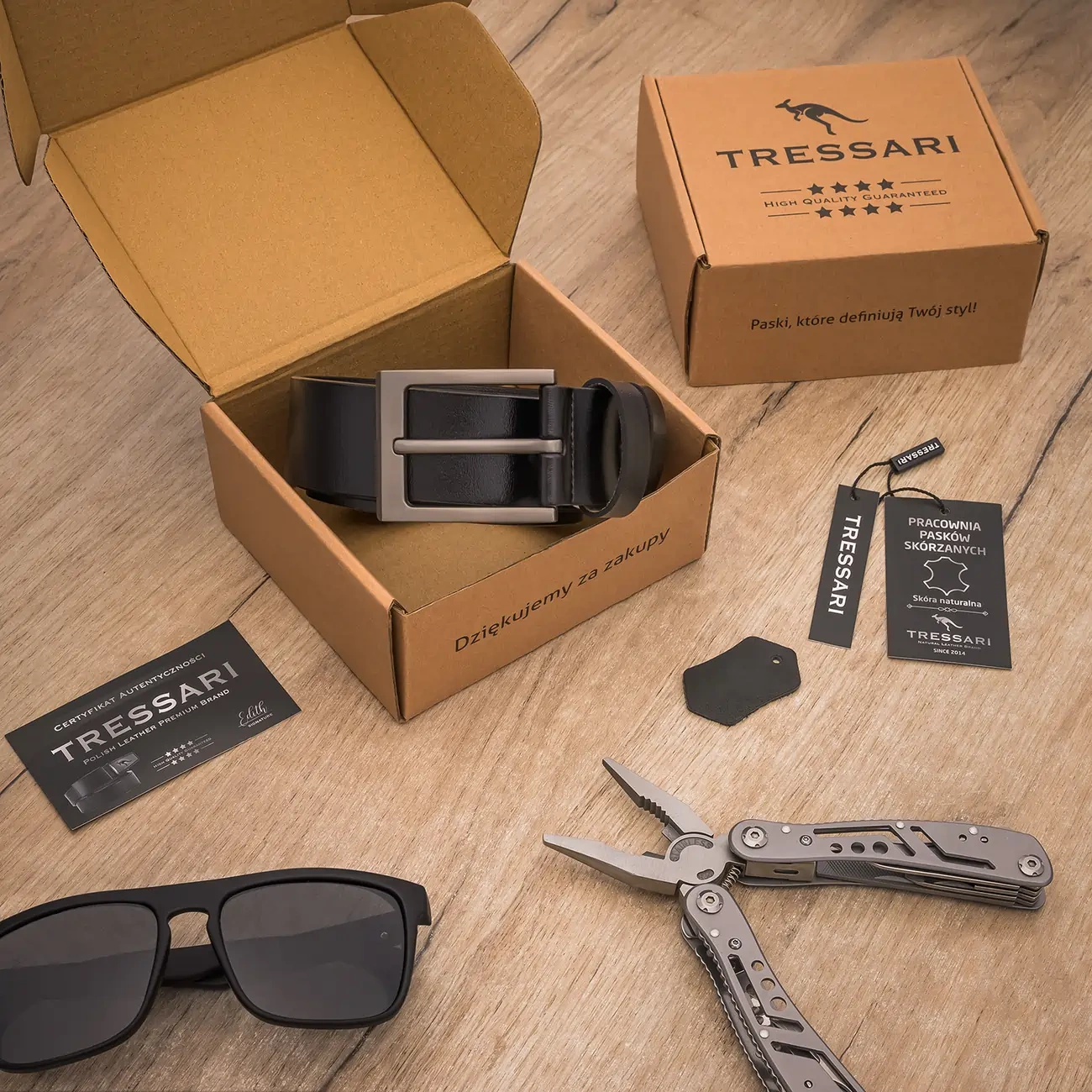 Creatură din piele pentru bărbați TRESSARI - 100% piele naturală (neagră, 125 cm)