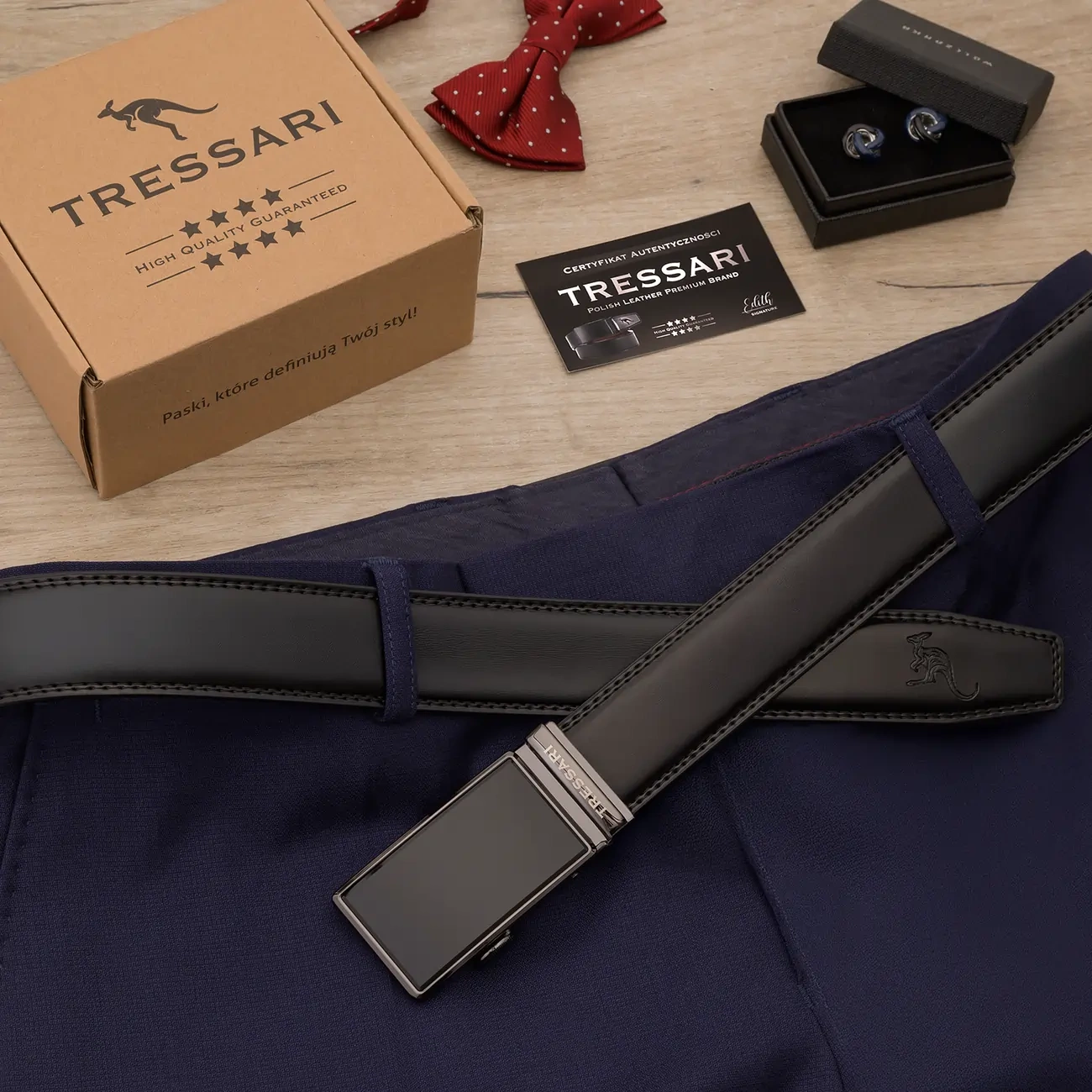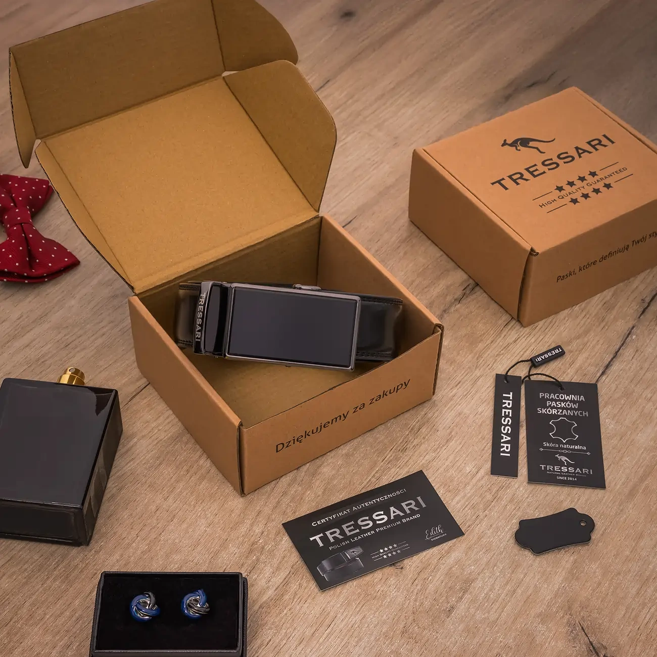 Fiecare TRESSARI, curea eleganta, cu logo-ul TRESSARI, care este cu grija, cu logo-ul, in cutie eleganta îl face un cadoul perfect pentru un tată, soț, iubit sau prieten. Este o combinație armonioasă de lux, funcționalitate și clasice atemporale care va satisface așteptările chiar și ale celor mai pretențioși.