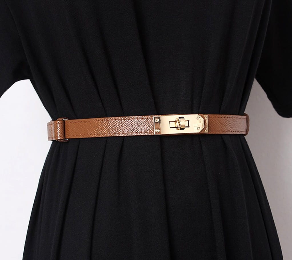 Curea de damă cu talie îngustă cu cataramă aurie, reglabilă