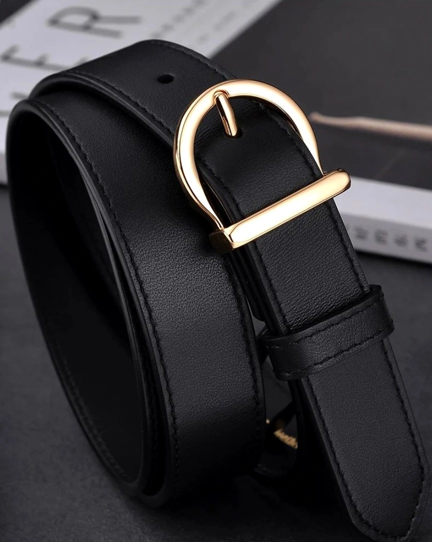 Curea elegantă pentru femei, din piele naturală, cu cataramă din metal auriu