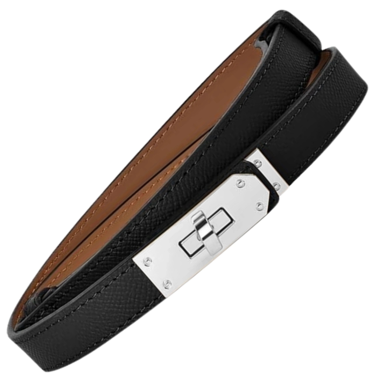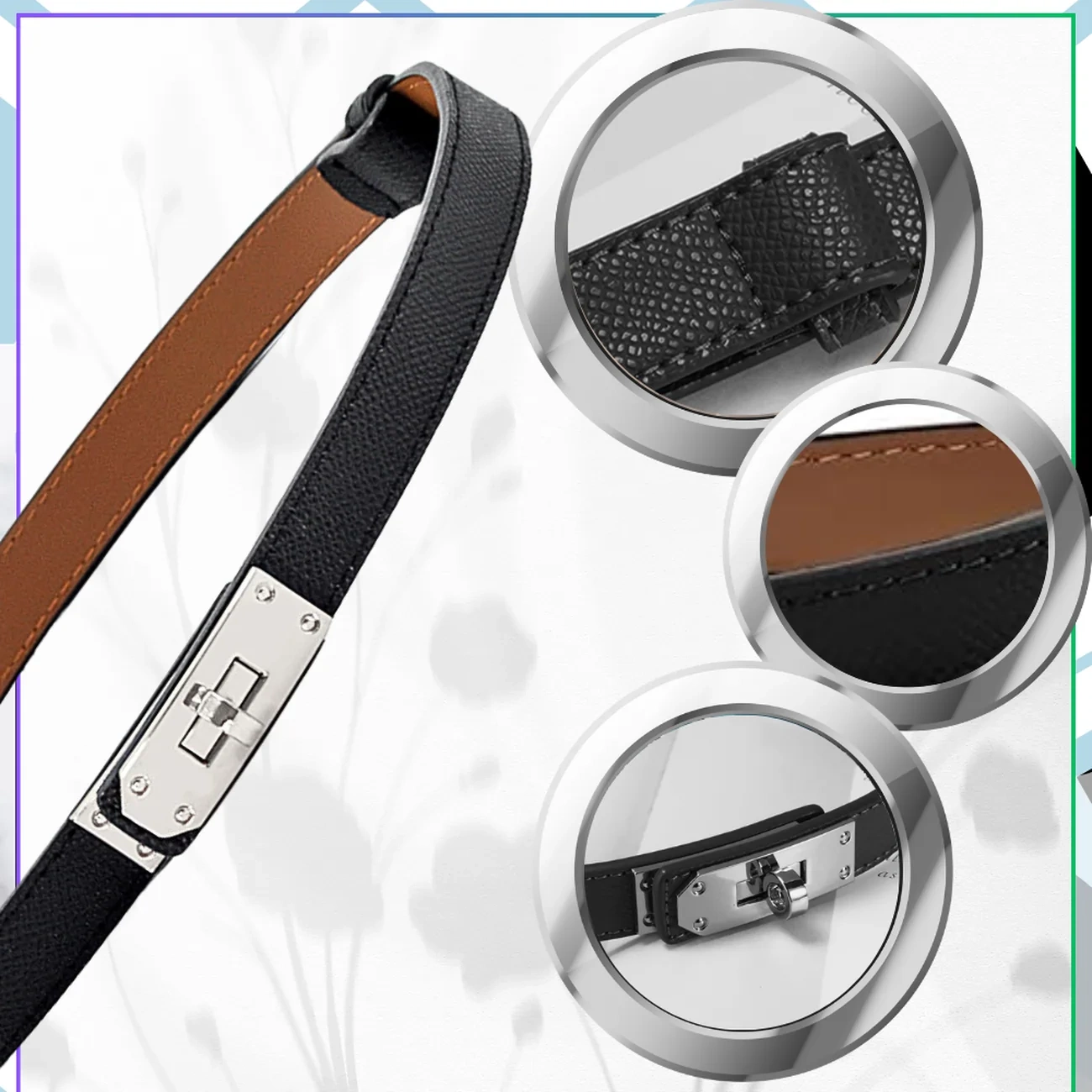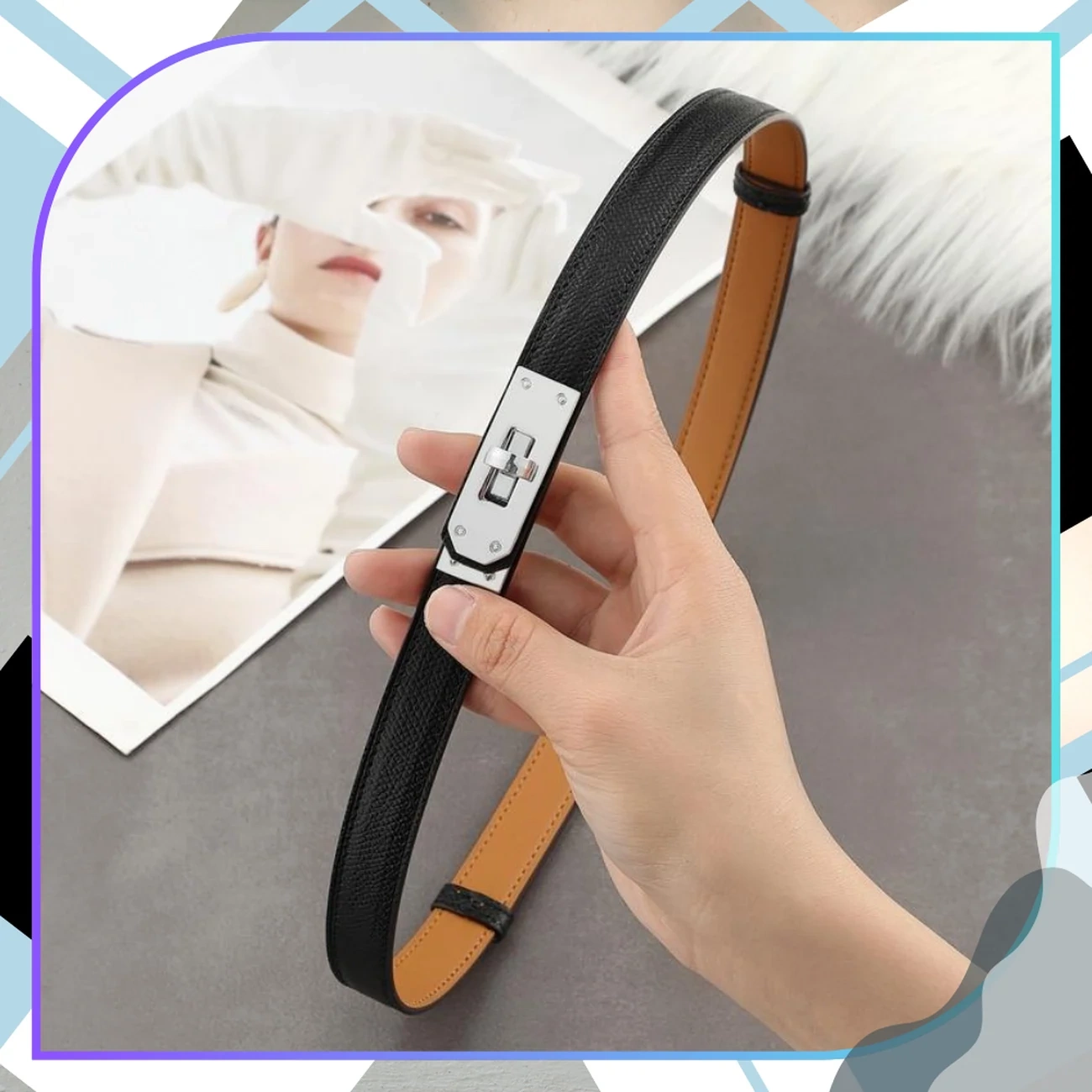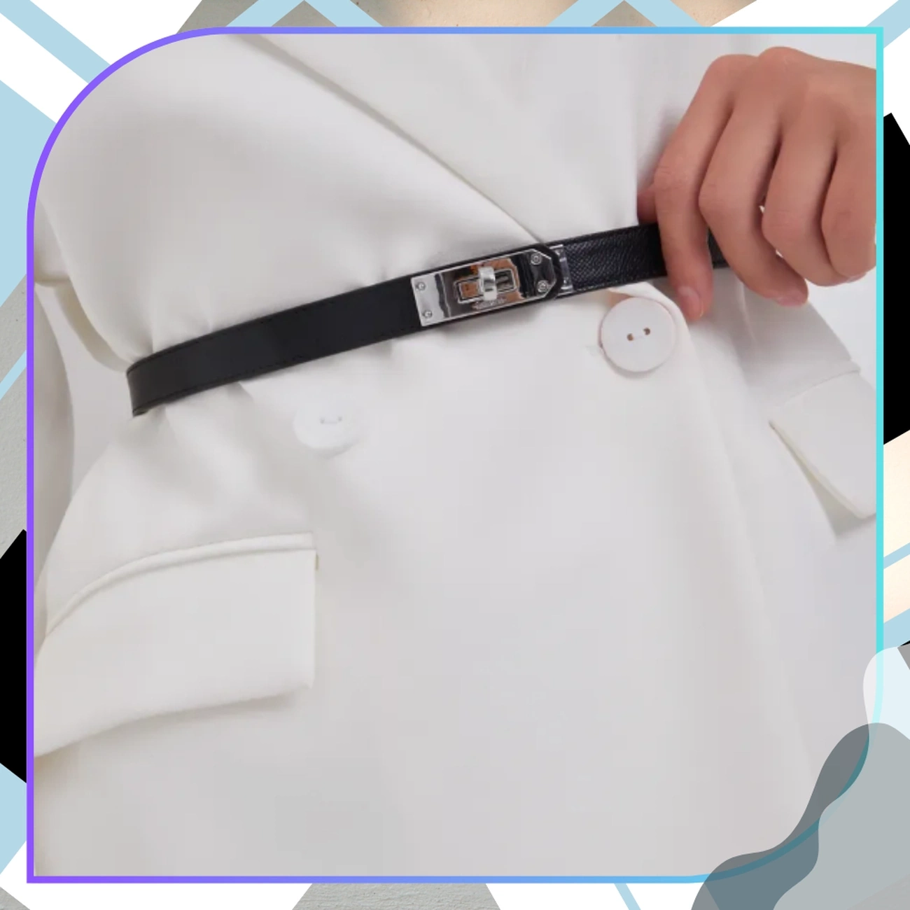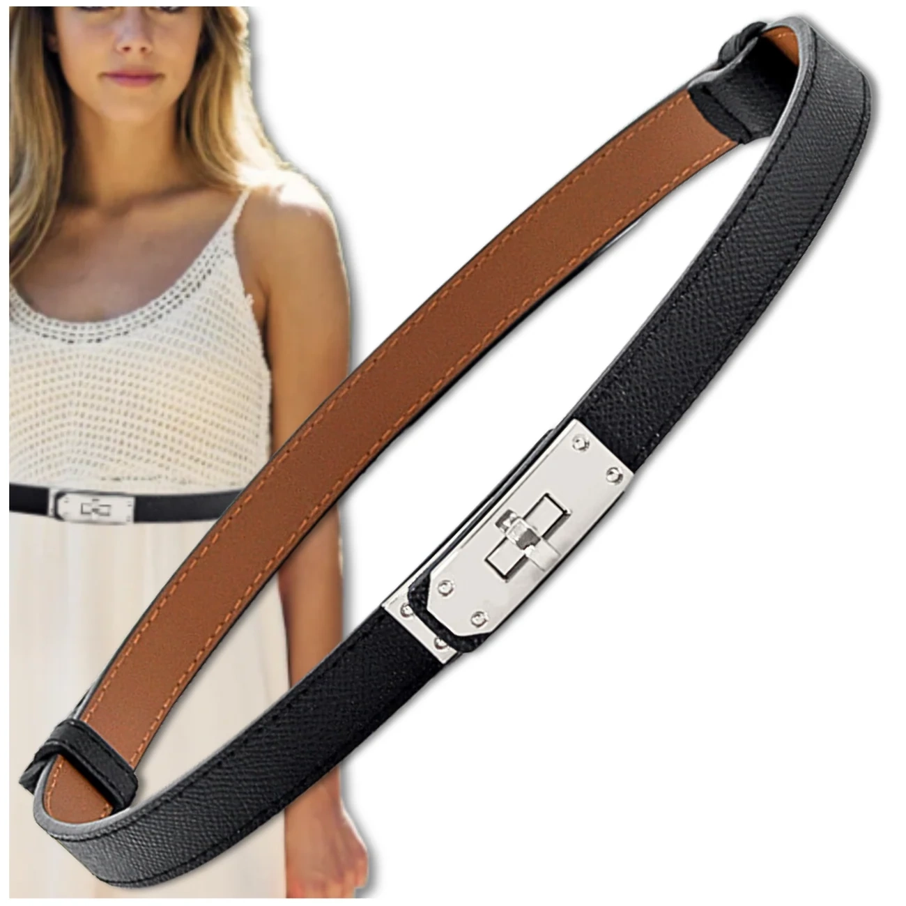 Curea de piele de damă cu talie îngustă cataramă argintie reglabilă