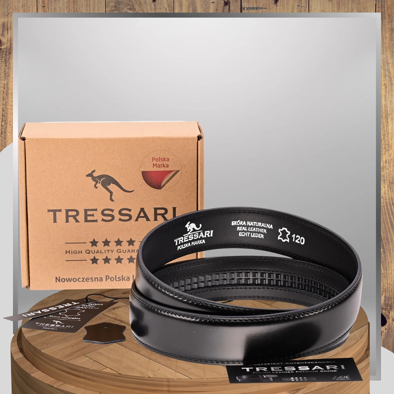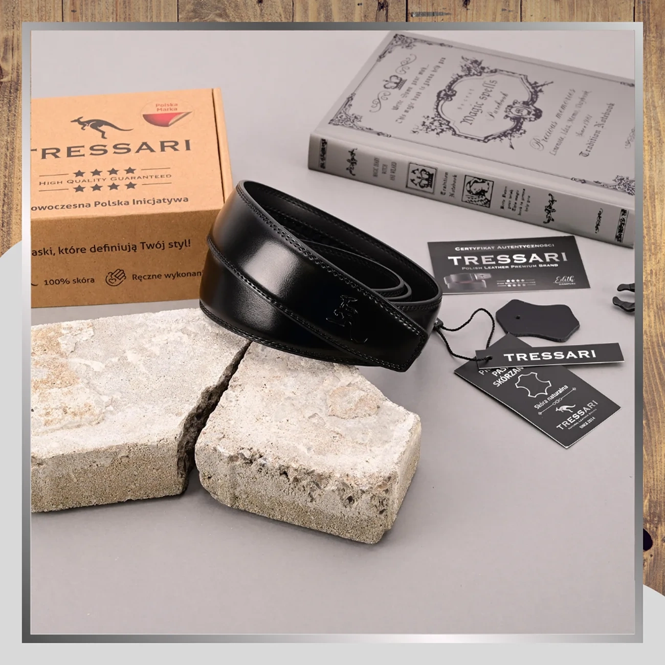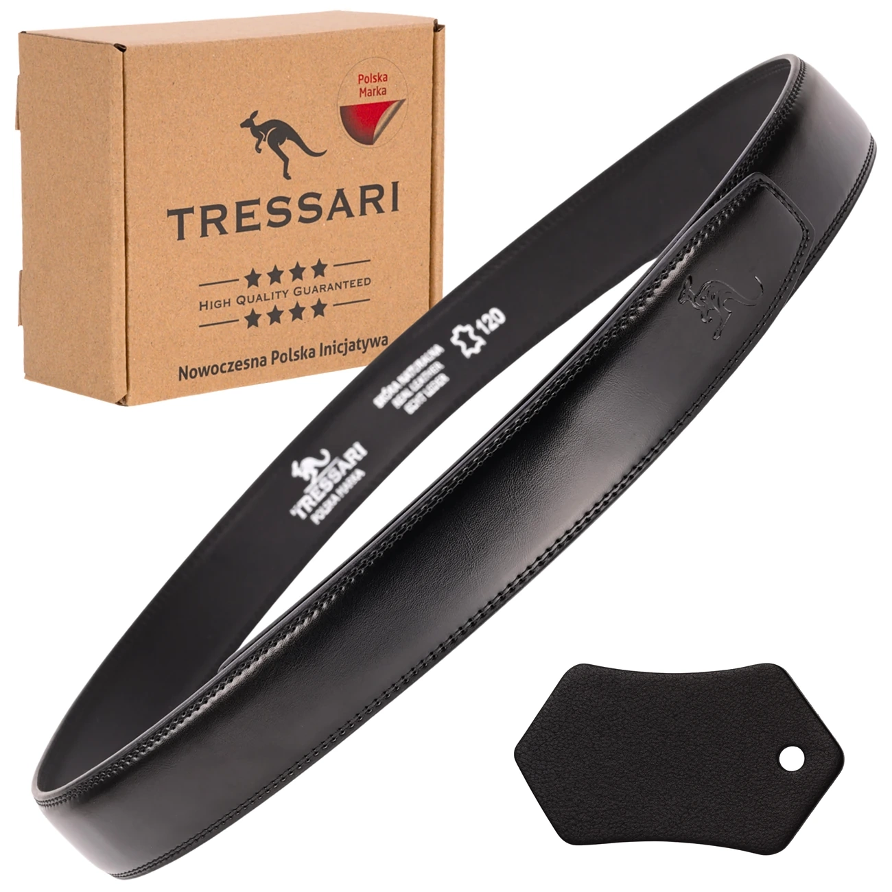 Curea din piele pentru bărbați TRESSARI - 100% piele naturală (Negru, fără cataramă, 120 cm)