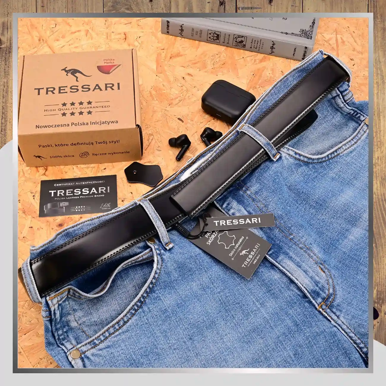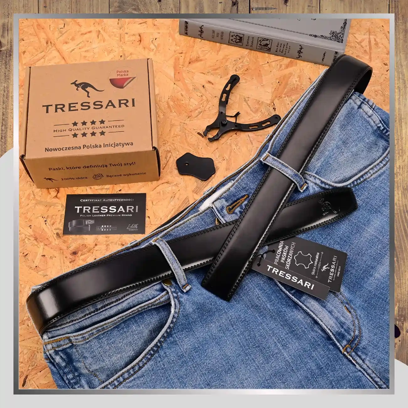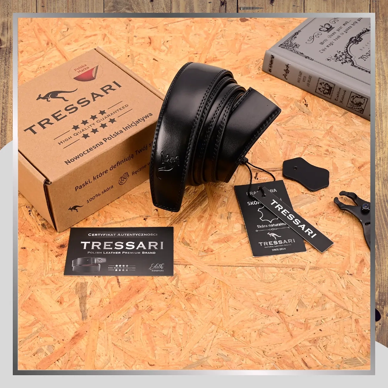 Curea din piele pentru bărbați TRESSARI - 100% piele naturală (Negru, fără cataramă, 120 cm)
