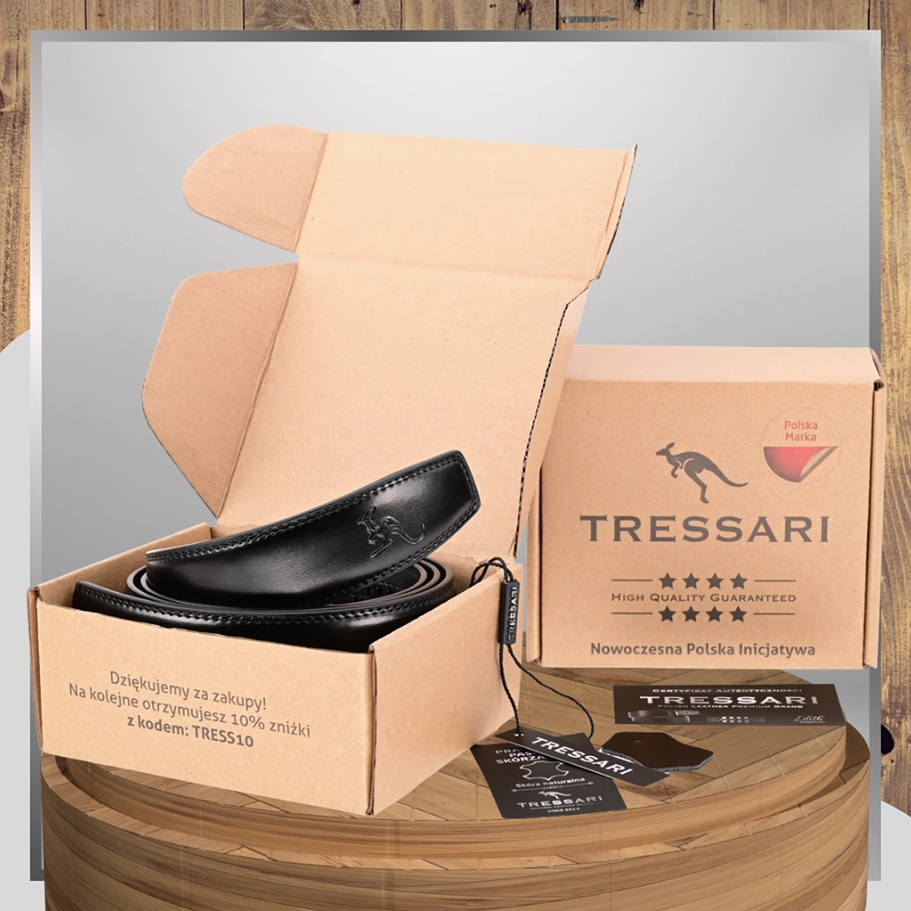 Fiecare curea TRESSARI este ambalată într-o cutie cadou ecologică, care îi evidențiază caracterul prestigios.