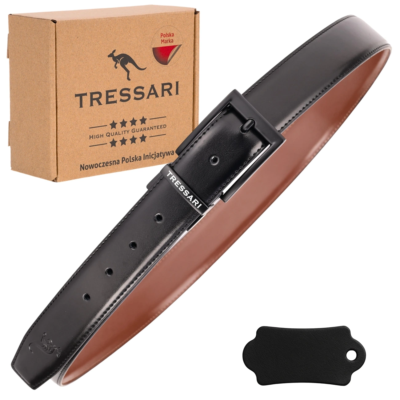 Curea TRESSARI pentru bărbați din piele cu două fețe - 100% piele naturală (Negru / Maro, 120 cm)