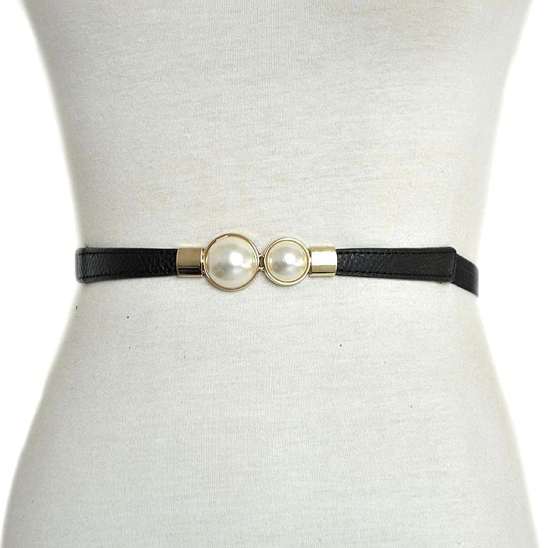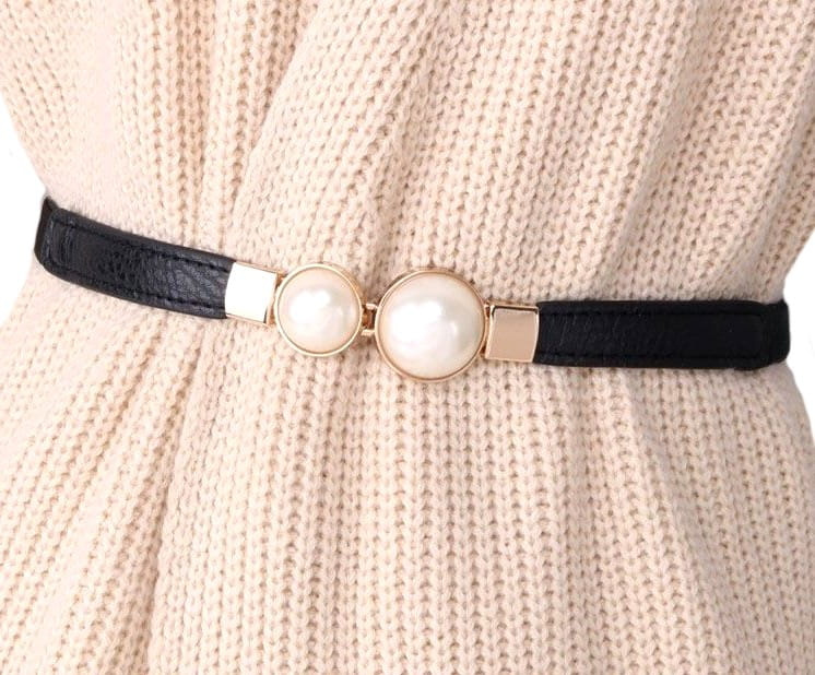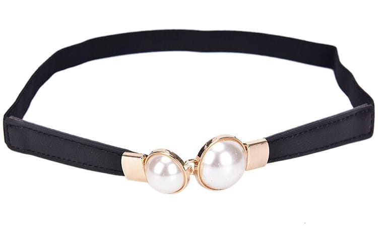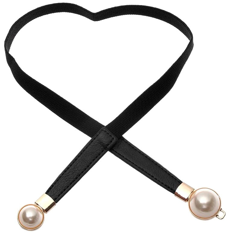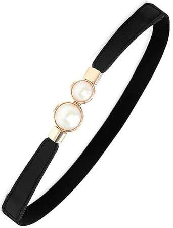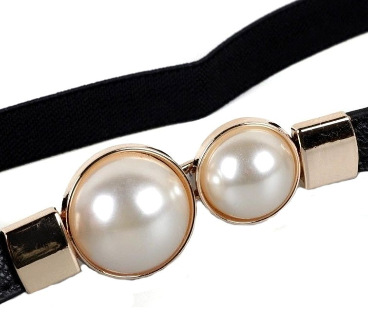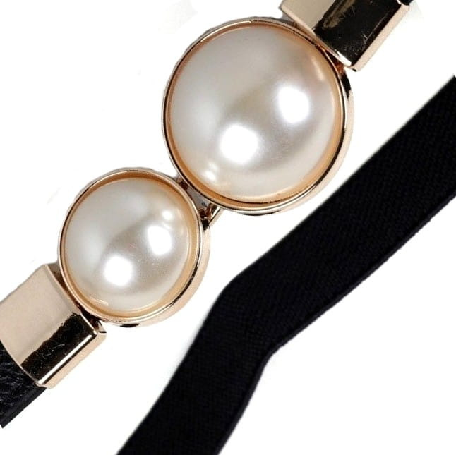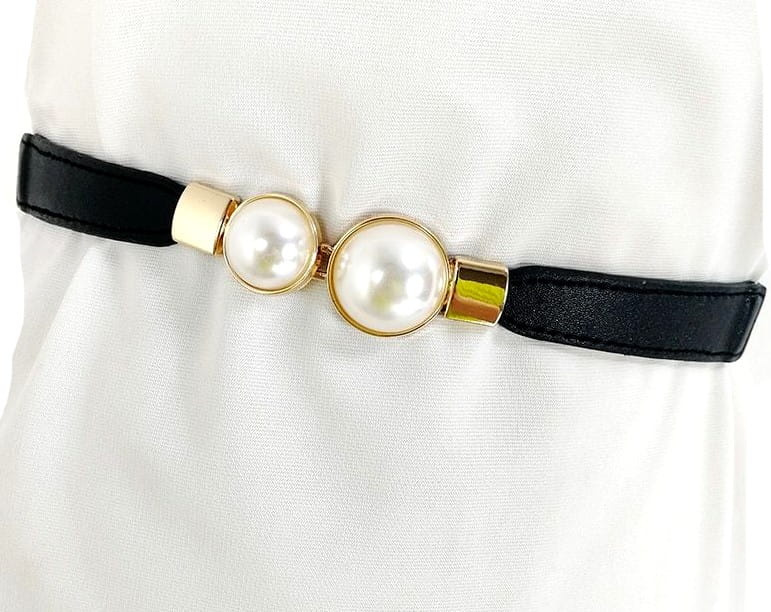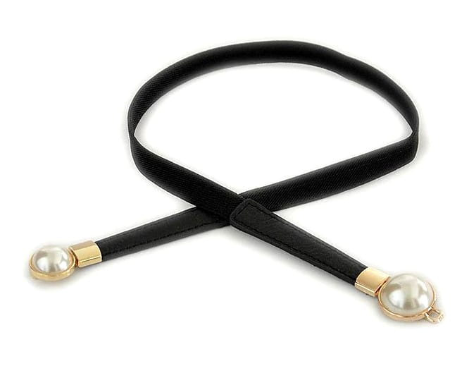 Curea neagră îngustă cu perle pentru femei de toate vârstele