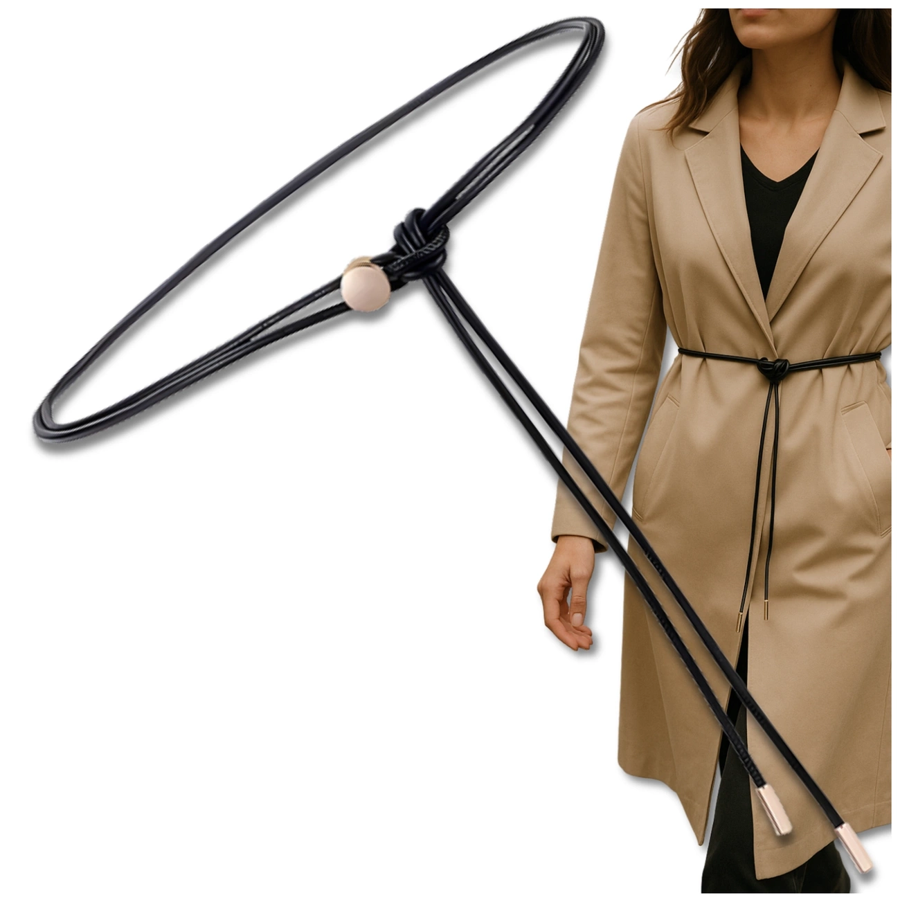 Datorită lungimii sale de 130 cm, cureaua se potrivește la o varietate de tipuri de corp și poate fi ajustată liber. Este conceput pentru a accentua subtil talia, fără a restricționa mișcarea. Designul său minimalist este îmbogățit cu un element decorativ sub formă de minge ornamentală, făcându-l nu numai practic, ci și excepțional de elegant.
