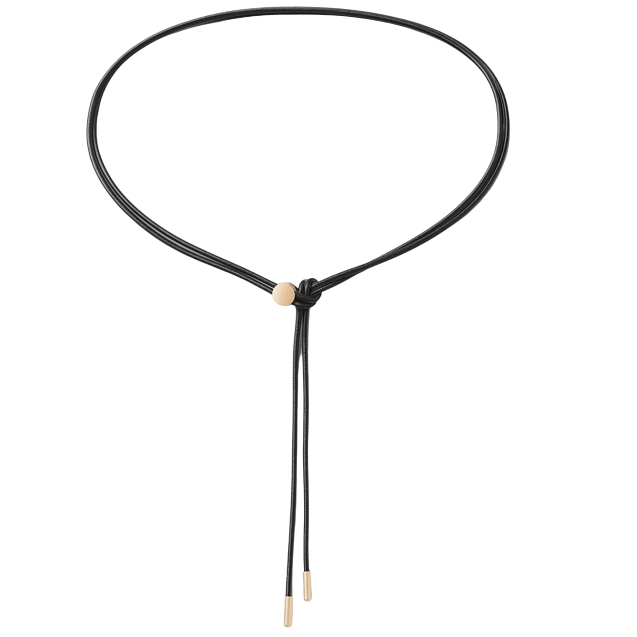 Curea ingusta de dama din piele neagra legata in talie, eleganta