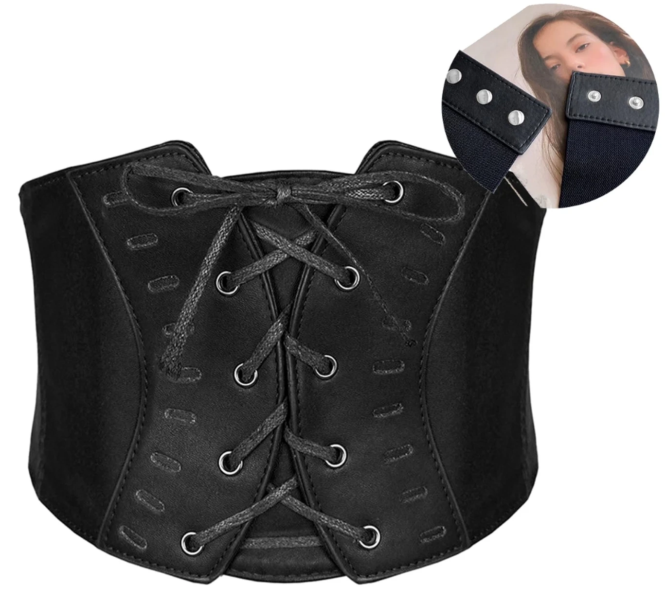Curea legata, centura lata, corset cu dantela din cauciuc negru
