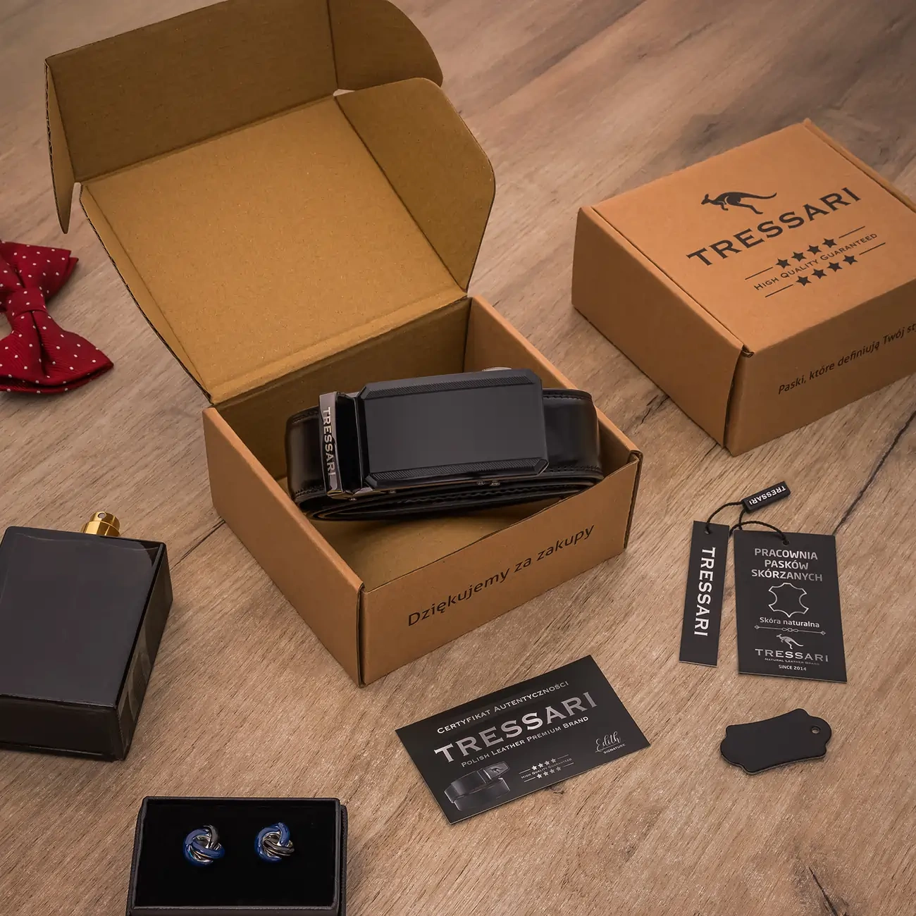 În plus, setul include un certificat de autenticitate, o etichetă și un eșantion de piele, care subliniază calitatea înaltă a manoperei ocazii.Rezumat - de ce merită să cumpărați o curea din piele TRESSARI!?