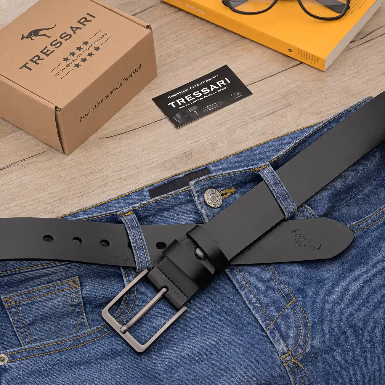Cureaua barbati piele TRESSARI, piele naturala, 100% neagra, pentru pantaloni