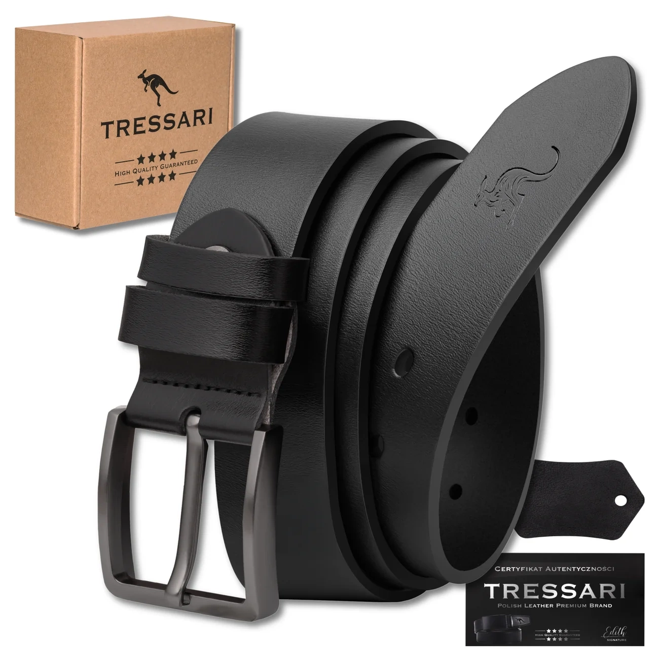 Creatură din piele pentru bărbați TRESSARI - 100% piele naturală (neagră, 115 cm)