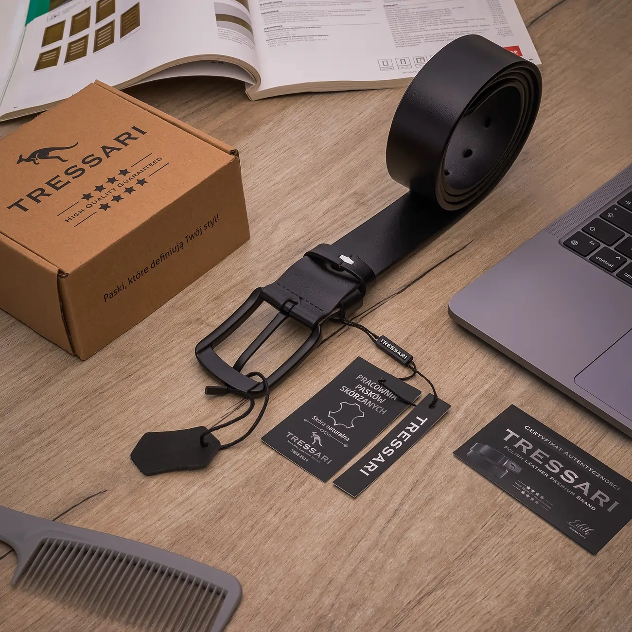 TRESSARI este o marca premium poloneză, atentă deosebită la detalii și atenție deosebită la detalii. Producția acestei curele de piele folosește piele naturală de vacă cu boabe, care se distinge prin rezistența la deteriorare și capacitatea de a-și păstra forma pentru o perioadă lungă de timp. Datorită acestui fapt, cureaua nu se crapă sau nu se întinde excesiv, chiar și în timpul utilizării intensive.