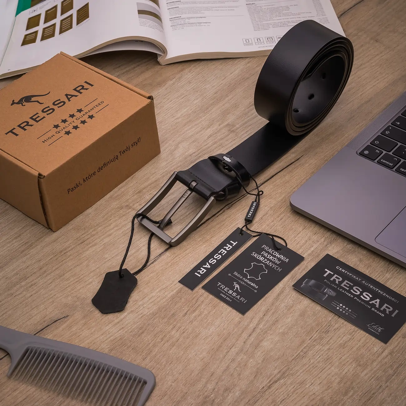 TRESSARI este o marca premium poloneză, o selecție atentă la materiale și la detalii. La producerea acestei curele de piele s-a folosit piele naturală de vacă cu bob, remarcată prin durabilitate și rezistență excepțională la deteriorare. Datorită acestui fapt, cureaua nu se crapă sau nu se întinde excesiv, chiar și în timpul utilizării intensive.