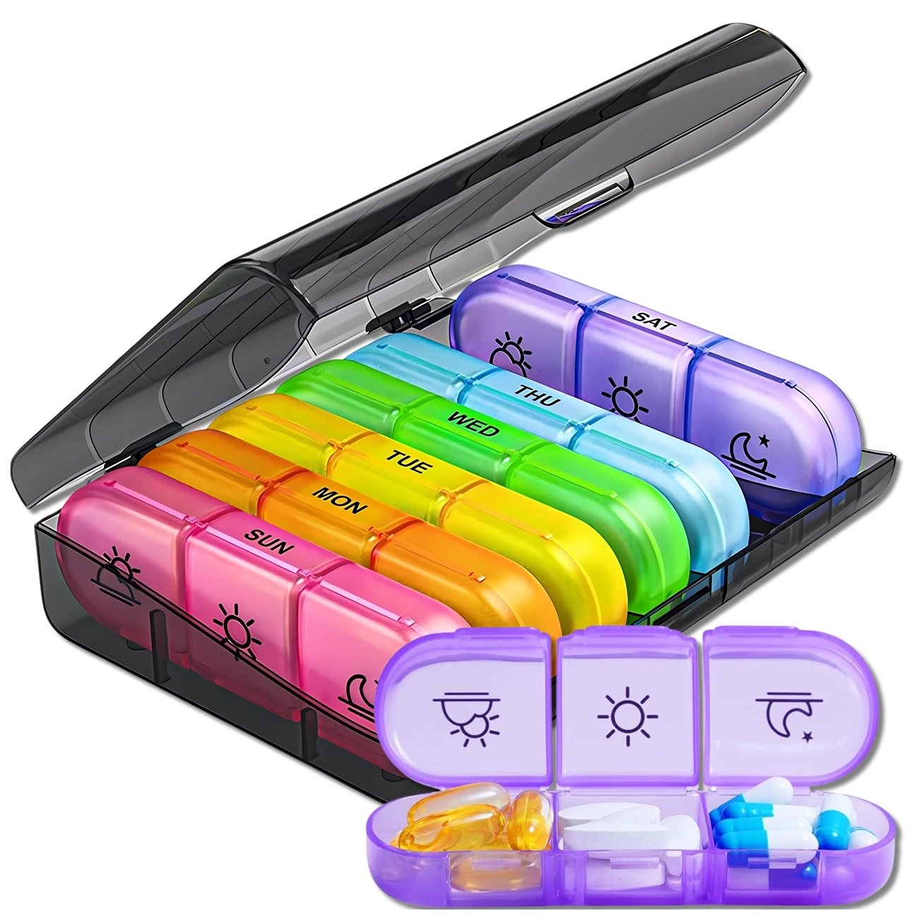 Marchurile clare în limba engleză (luni-duminică) îl fac ușor de utilizat chiar și pentru cei cu memorie sau vedere limitată. Datorită împărțirii clare în zile și ore ale zilei, organizarea medicamentelor devine intuitivă. Produsul este fabricat din plastic negru durabil, sigur, cu compartimente multicolore, ceea ce face și mai ușoară identificarea segmentului corespunzător.