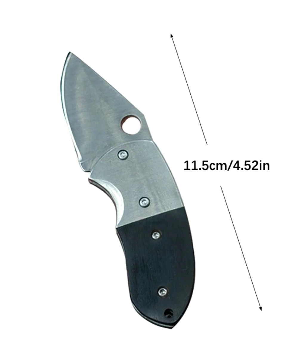 Mini cuțitul nostru de buzunar este conceput pentru funcționalitate maximă într-o dimensiune compactă. Plierea ușoară îl face extrem de practic și întotdeauna gata de utilizare. Lungimea totală a cuțitului este de 11,5 cm, ceea ce îl face un instrument ideal pentru transportul zilnic.