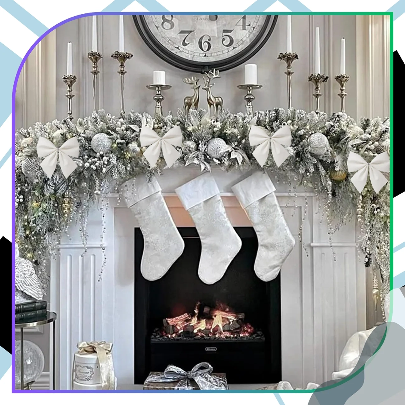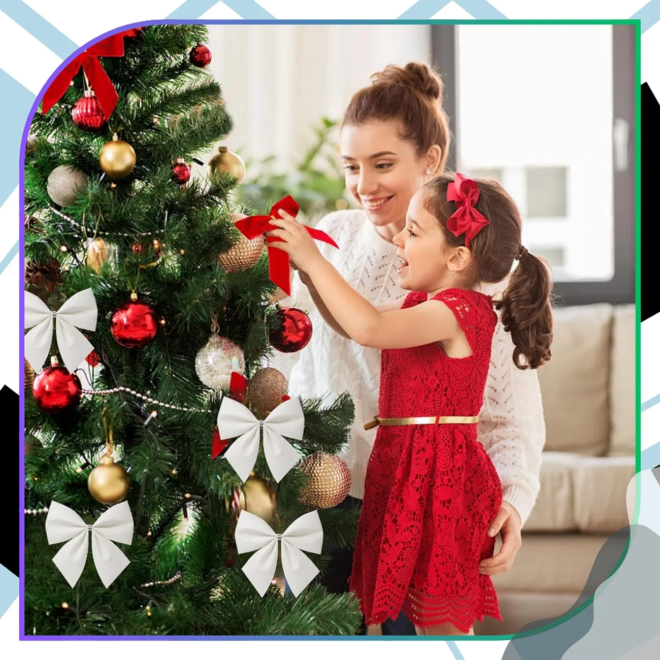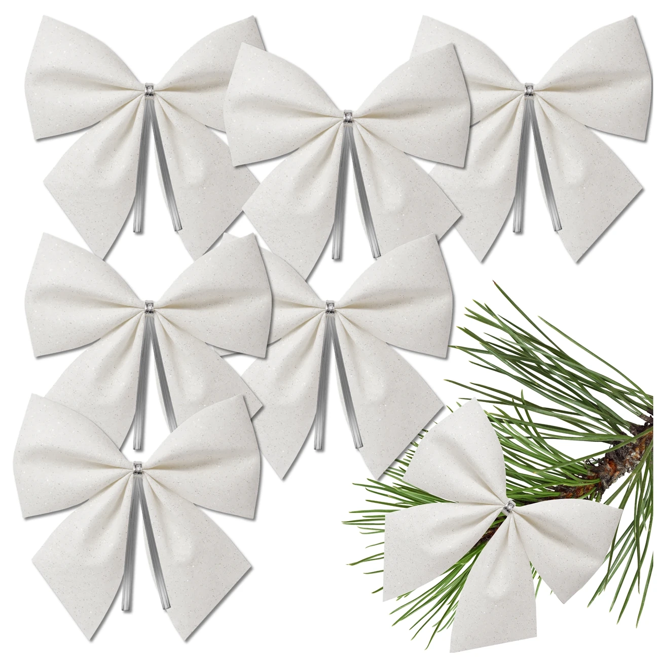 Decorațiuni de Crăciun cu funde, set de 6 bucăți, funde albe