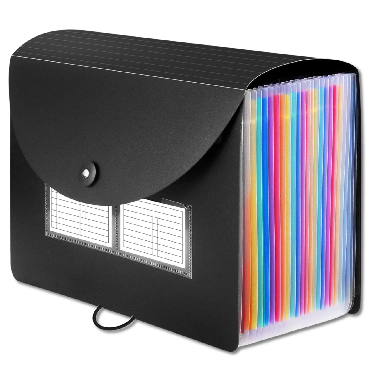 Maper de birou pentru documente A4, negru, organizator, 25 compartimente cu bandă elastică