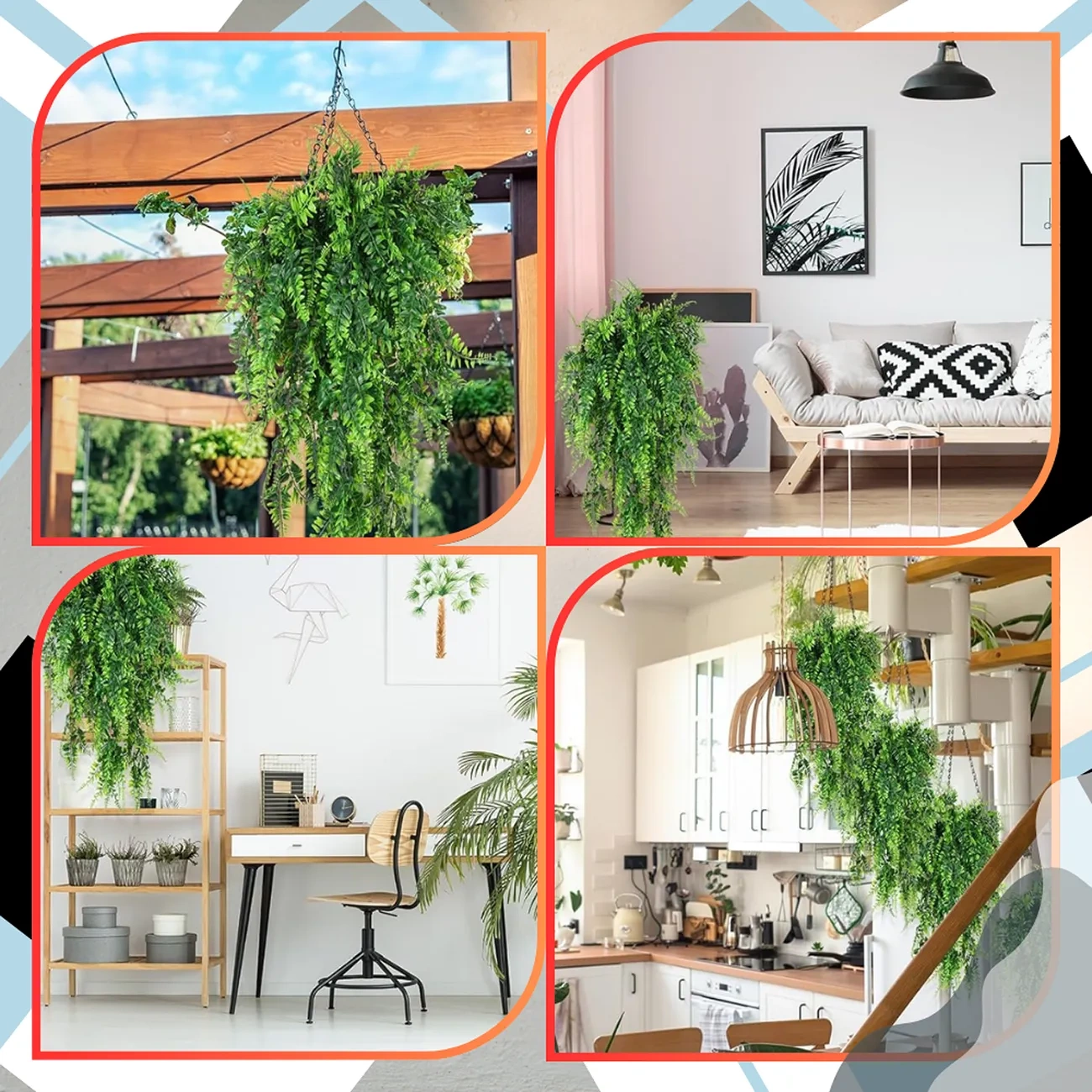 Confecționate din plastic de înaltă calitate, ferigile sunt extrem de durabile și realiste. Culoarea lor verde intens și structura delicată a frunzelor fac dificilă deosebirea lor de plantele vii. Fiecare ferigă agățată artificială are o lungime de până la 82 cm, ceea ce oferă un efect vizual spectaculos, indiferent de locul în care sunt atârnate.